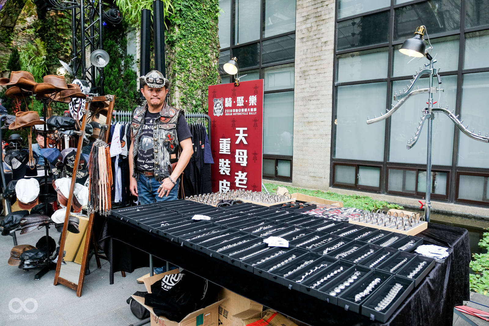 呼應Indian自由奔放的美國精神,現場邀請眾多美式風格相關周邊商品攤位,從服飾、皮衣,到金屬手鍊與安全帽、背包等,整體的會場氣氛與參加攤位皆與常見的日系車款會師活動不同,與其說是車主會師活動,筆者覺得用美式風格嘉年華會來形容更顯合適。我們也可以從照片中看出前來車聚的車主無不盛裝打扮,完整呼應該車款的品牌精神。