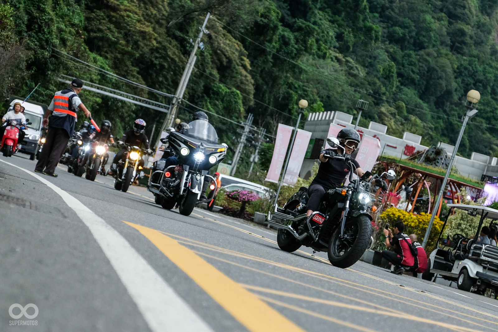 車隊經過約半小時的騎乘過程後,一同來到活動最後的目的地日月潭向山遊客中心,在週末觀光客眾多的日月潭,大量的重機繞行於湖邊的景象實在相當霸氣。
