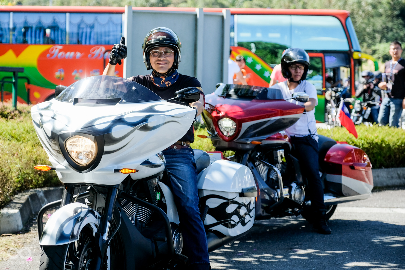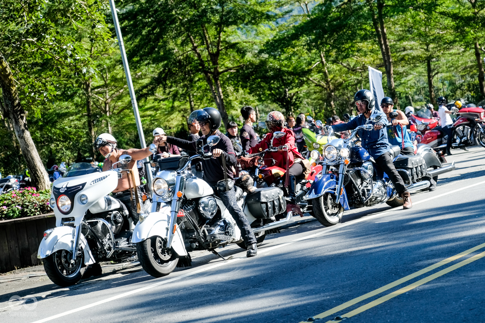 經過一晚的休息之後,活動也在第二天轉往鄰近的日月潭,讓車主會師活動增添許多摩托車元素,而不是單調的在飯店中休息度假,一早車主也穿上帥氣的皮衣、牛仔外套,並開啟Indian車上的音響系統浩浩蕩蕩出發。