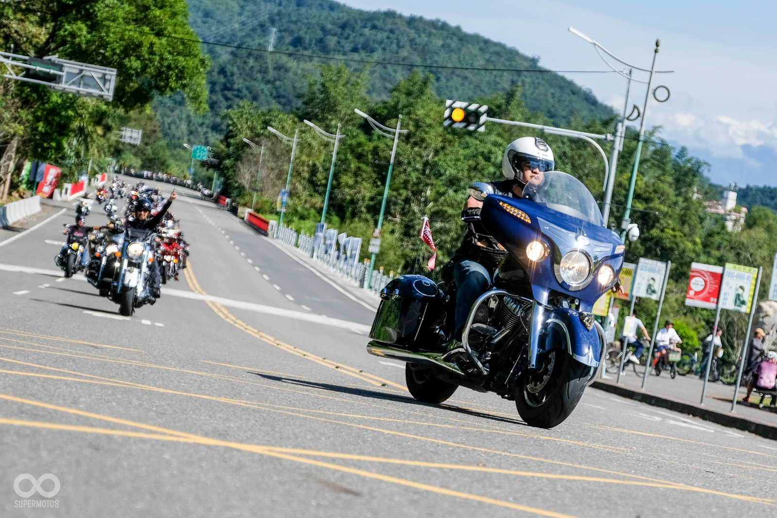 今年10/15、16日兩天,埔里這個台灣地理中心所在地充滿了濃厚的美式風格,全台眾多Indian車主盛裝打扮,騎乘自己的愛車齊聚一堂,參加官方舉辦的2018車主大會師,活動內容除了眾多周邊配件抽獎與晚宴外,第二天也安排了晨騎活動讓車主可以一飽日月潭的優美風光,為活動劃下美好句點。