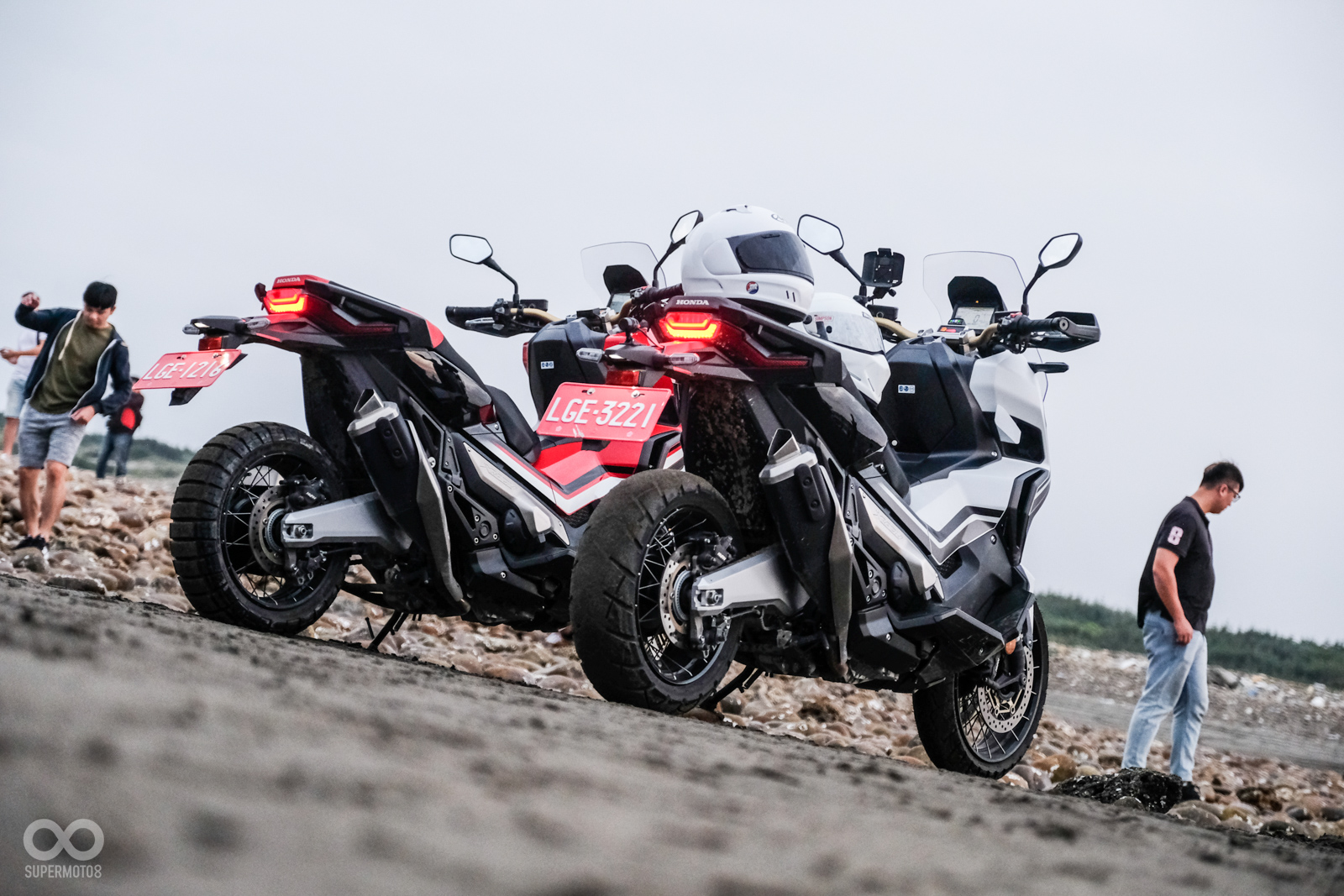 隨著夕陽落下,步步逼近的海水正提醒我們該離開海岸邊了,但這時才是真正的考驗,由於沙灘旁的地形導致上岸路徑皆為上坡,配上沈重的車身鬆軟的沙土,幾乎花了兩倍時間才將兩輛X-ADV騎回鋪裝路面,這也使得本次參與拍攝的所有同事筋疲力竭,身上帶著滿滿的沙土回到台北。