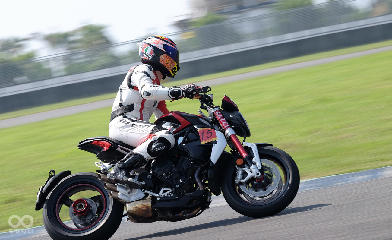 重頭戲賽道體驗正式開始!所有車輛共分4組,分別按照個人騎乘的能力與車種來區分,以降低場上快慢車速差距過大造成危險的機率。每人一整日共有上午下午各2次的騎乘時間,每節中有空出蠻長的休息整備時間,讓騎士可以在最適當的分組與時間下安心體驗賽道。由於倍耐力輪胎本身就是許多頂級車款的標準配胎,所以這次現場MV AGUSTA、DUCATI、等...百萬級跑車相當多,也因為今年吹起輕跑車的風氣,所以現場裝著PIRELLI上個月剛在國內發表的ROSSO II SC的YAMAHA R3與Kawasaki 小忍者也不少。