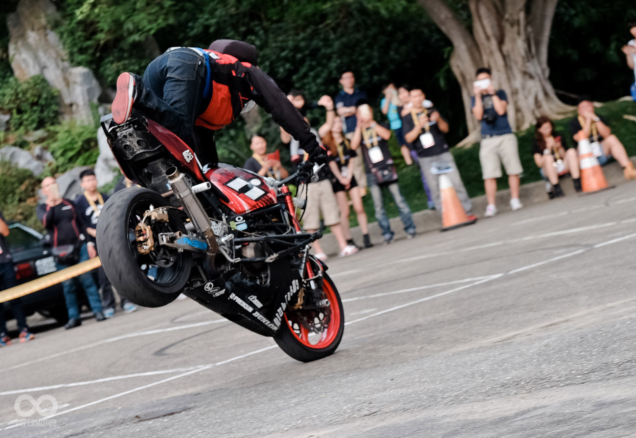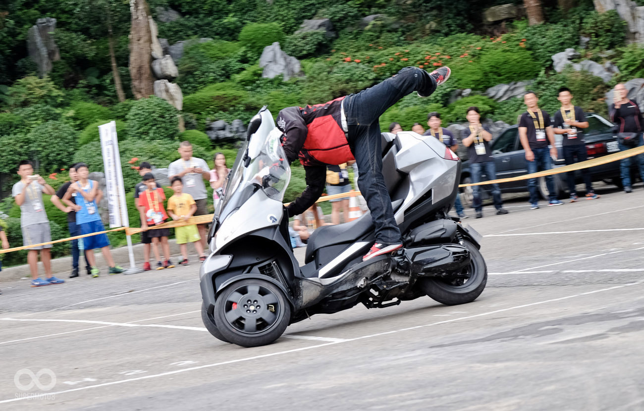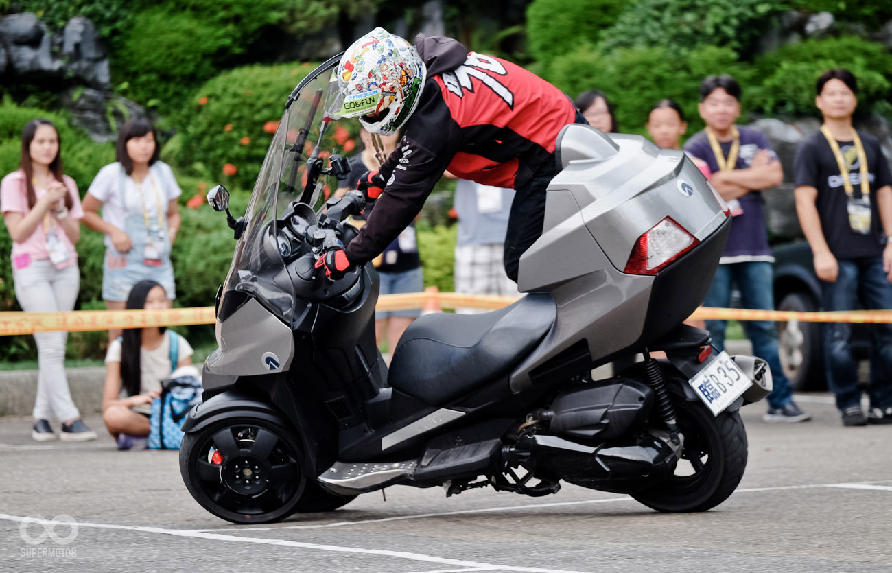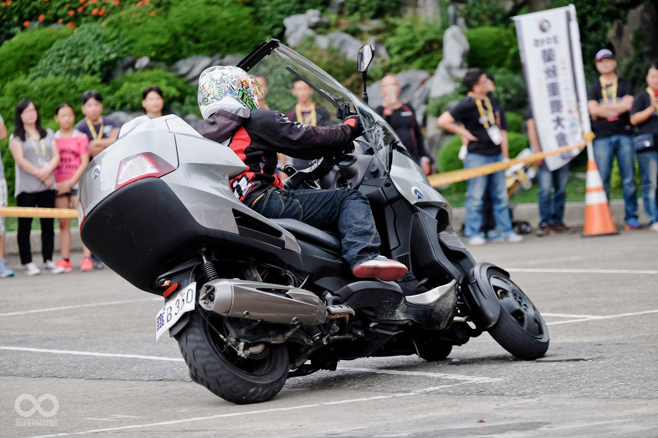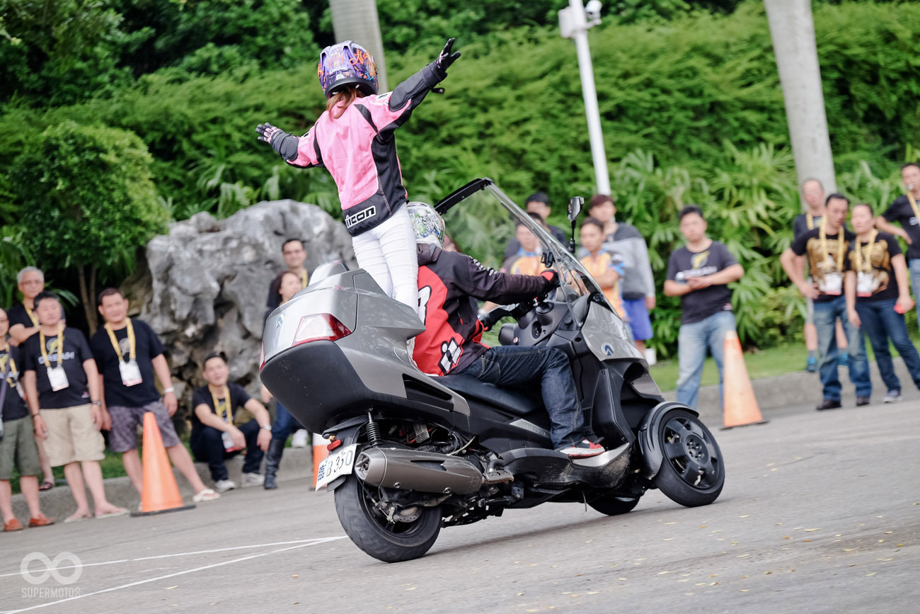 在下午的空檔,榮秋特別安排了來自日本的特技選手 小川裕之 進行特技表演,令人驚訝的是他竟然使用ADIVA AD3來進行第一段的表演,笨重的三輪車在他手上變得輕盈活耀,滑胎甩尾、站立過彎、雙人特技、等...,非常精采。當他使用上專用的特技車時那更是另一個不同境界,舉凡燒胎、翹後輪、孤輪...等特技騎技的展現,都讓現場車友們驚嘆連連。