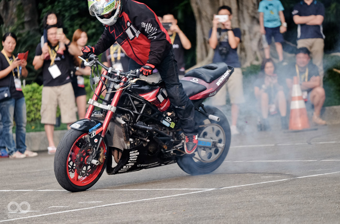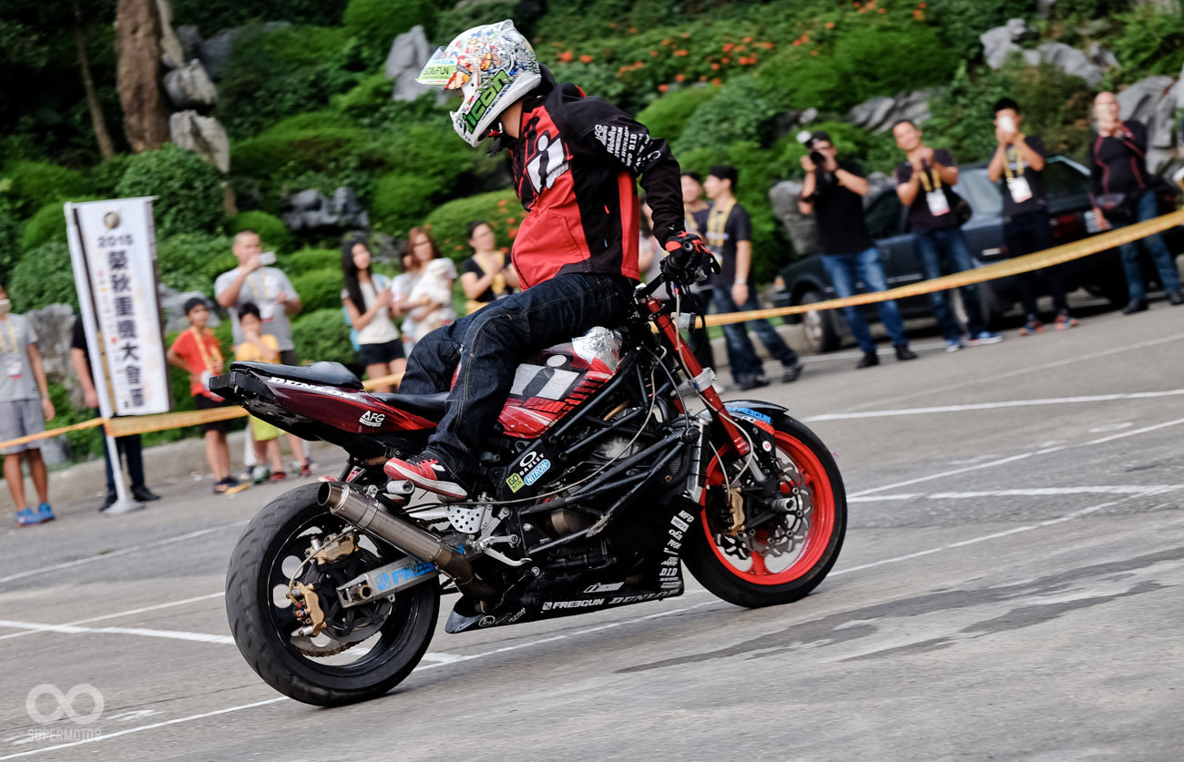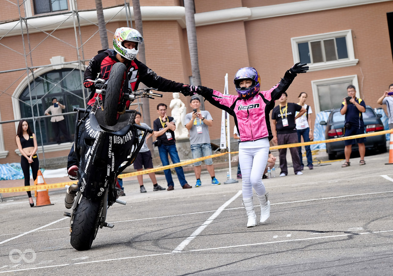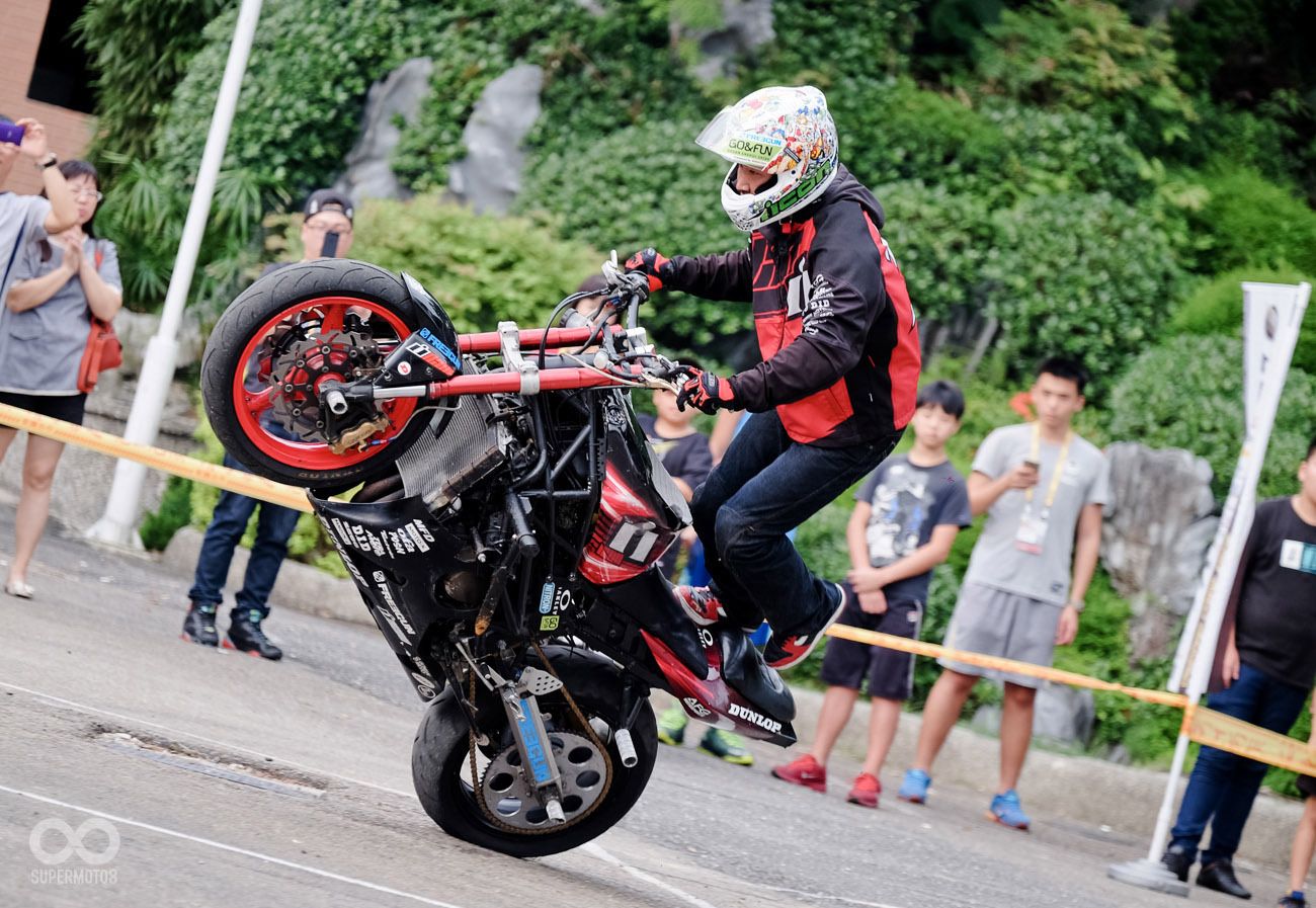 在下午的空檔,榮秋特別安排了來自日本的特技選手 小川裕之 進行特技表演,令人驚訝的是他竟然使用ADIVA AD3來進行第一段的表演,笨重的三輪車在他手上變得輕盈活耀,滑胎甩尾、站立過彎、雙人特技、等...,非常精采。當他使用上專用的特技車時那更是另一個不同境界,舉凡燒胎、翹後輪、孤輪...等特技騎技的展現,都讓現場車友們驚嘆連連。