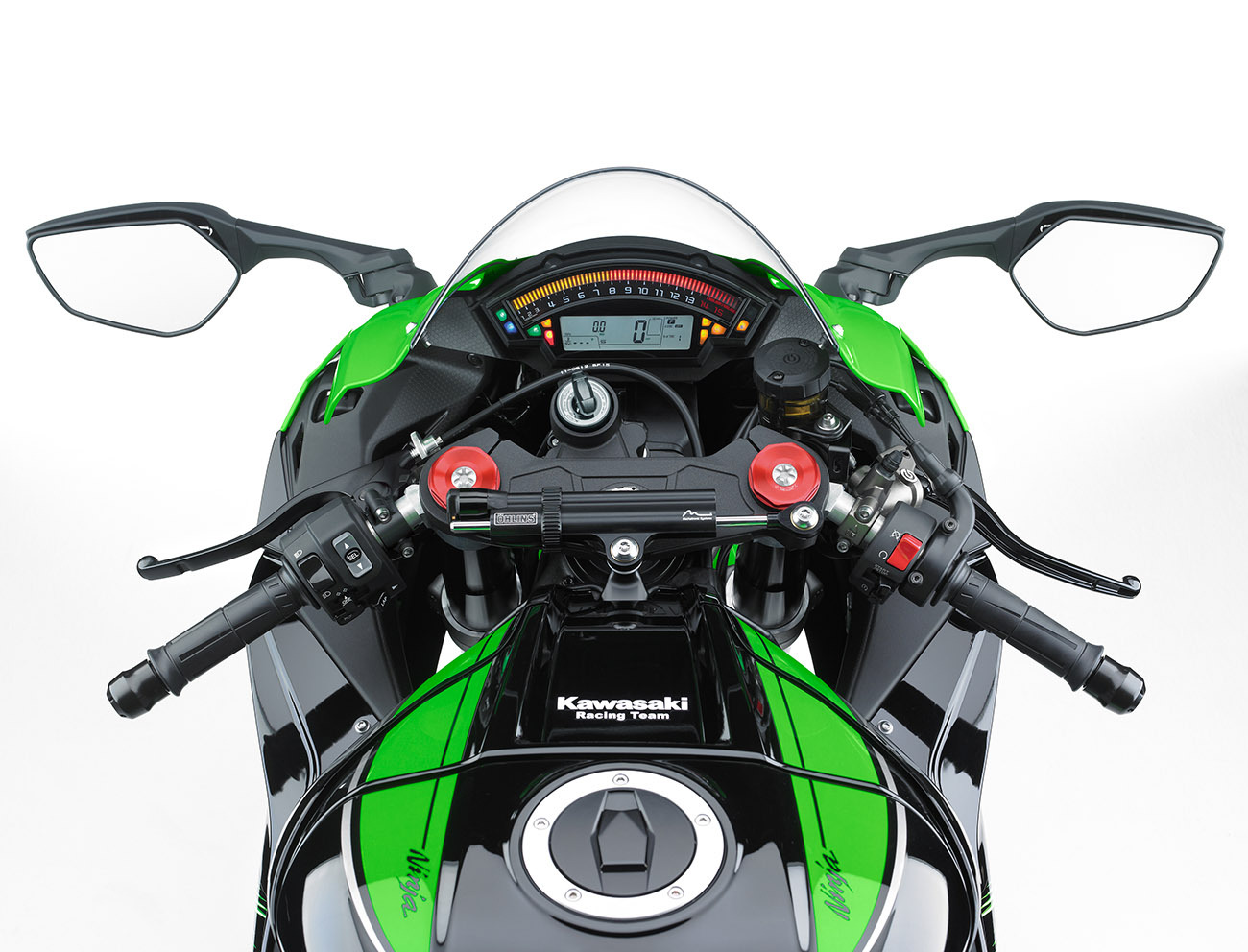旗艦車型的關鍵,ZX-10R在電子設備上導入了跟H2相同等級的電子油門,而競爭對手的IMU系統,ZX-10R也不落人後,包含五向動態感應(加減速度、出入彎車身傾角等),加上S-KTRC循跡系統、3段馬力輸出(全出力、80%及60%)、KLCM彈射起步、KIBS智慧型ABS、KQS快速進檔系統、KEBC引擎煞車控制,以及Ohlins電子防甩頭,清單可說是全面開放,面對新世代公升級跑車的混戰,忍者王ZX-10R確實是作足了準備。