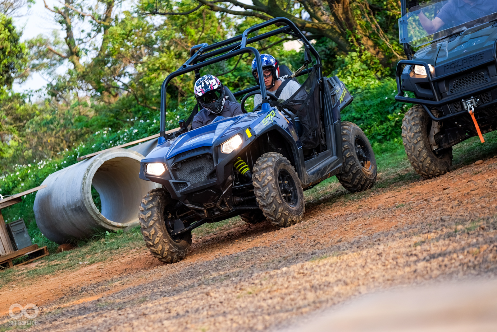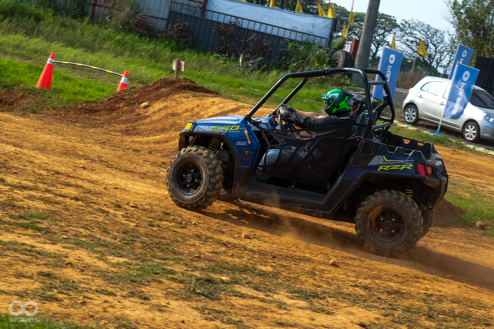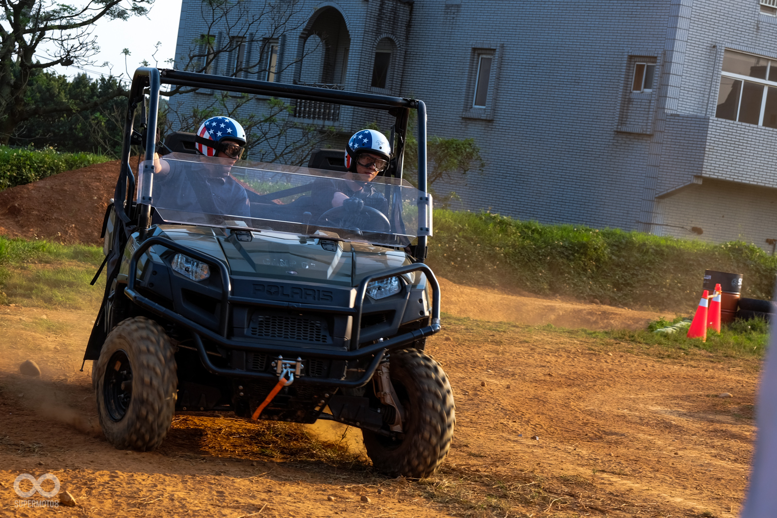 試駕活動首先由教練代理的三台UTV車款體驗揭開序幕,上車之前所有的人身安全部品必須全面到位,包括安全帽、護目鏡、手套等配備都必須穿戴完整,上車後也有專門的安全人員來檢查解說安全事項說明,包含檢查安全帶是否有繫上,行進間手腳不能擺放超出車外·乘客雙手必須緊握扶手或握把等。
