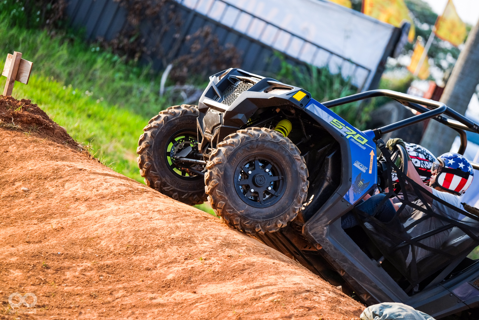 RZR 570則是更偏向運動、競技玩樂取向的ORV車款,擁有45匹的最大馬力,前後雙A臂的懸吊設定加上短軸距窄車身的設定,讓RZR 570有著相當靈巧、強悍的性能表現,不論是30、35度的陡坡,還是輪胎區的障礙地帶,RZR 570在全時四輪驅動以及CVT變速箱的幫助下,僅需依靠油門操作就能輕鬆突破,強大的越野性能相當令人驚艷。