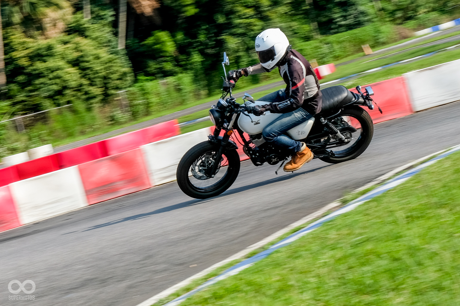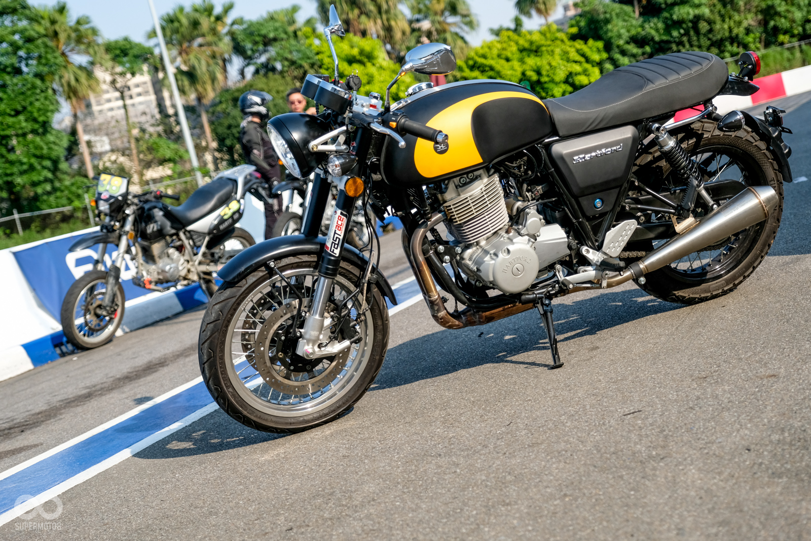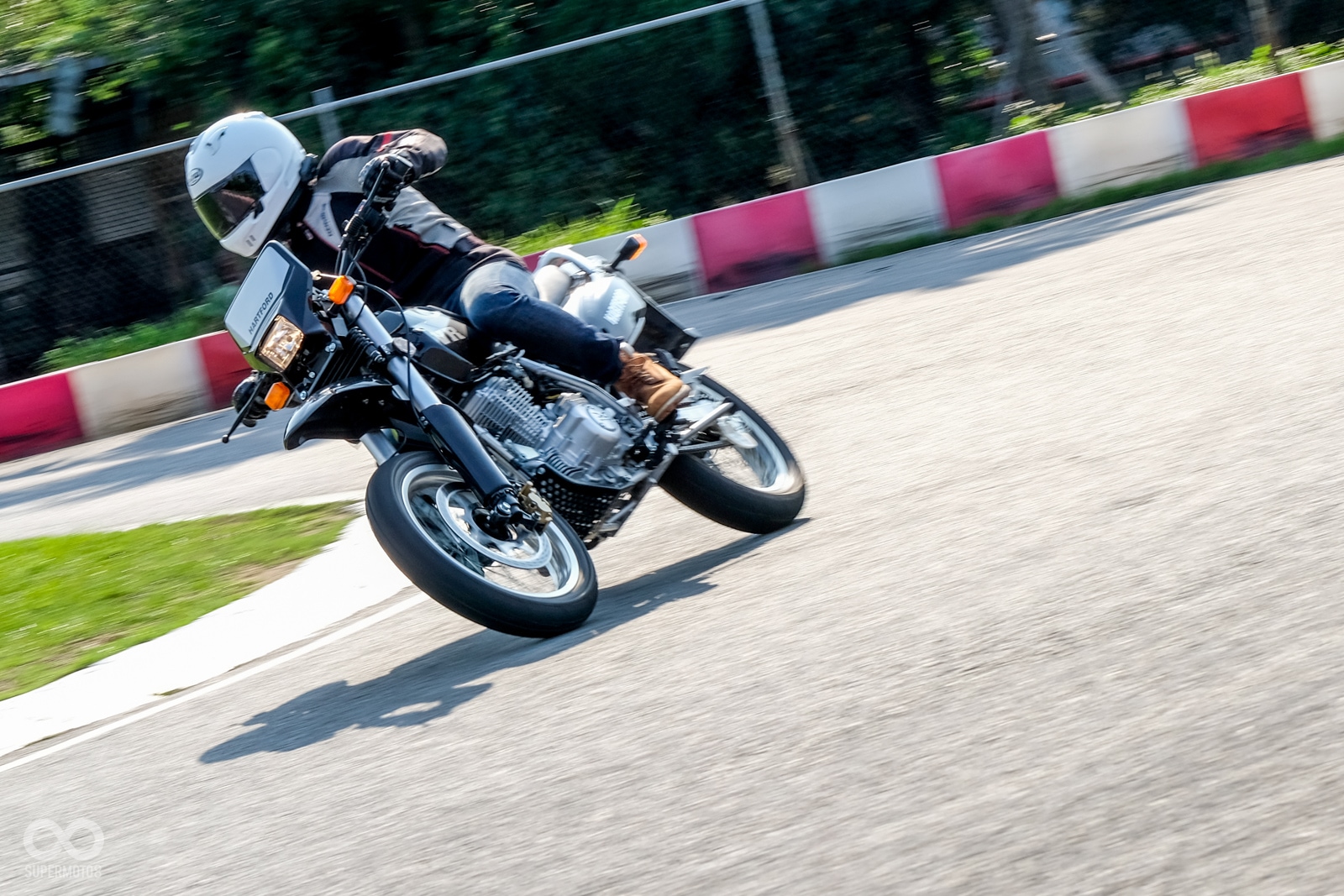 倒是43mm的倒立式前叉在彎中的支撐性表現頗有水準,不太會有軟腳的情況發生。要說缺點,就是前煞車力道不足,但筆者騎乘時該車款已經在場上奔馳一段時間,不知道煞車力道衰退是否與此有關。