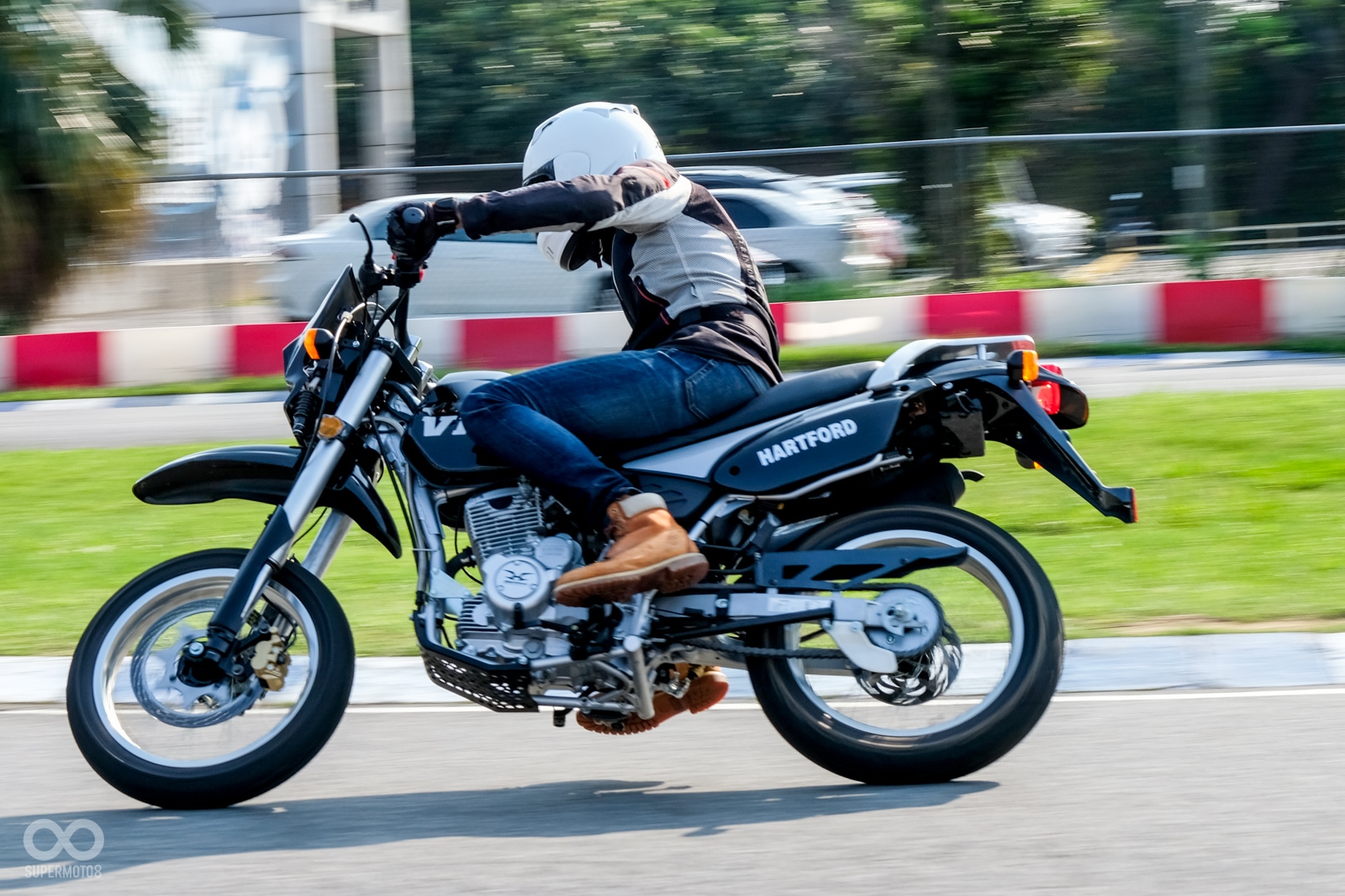 2001年,哈特佛憑藉穩定的車身結構以及首款「國產」越野車的姿態下,誕生了首款VR150,並在三年後誕生了VR200,而今年延續一貫的越野作風並傳承了VR200優異的車體造型,不過這回配上17吋前後瑪吉斯街道用胎,而相較以往最大的升級在於這回採用了43mm的倒立式前叉,在配備上算是VR車種的大升級,同時也讓騎士在面對較為惡劣的道路環境上多了一分保障,引擎系統上則是與新雲豹採用相同SOHC 四汽門223c.c.引擎,配備跟引擎的升級相信一定能夠在騎乘體驗上提供更大的樂趣。