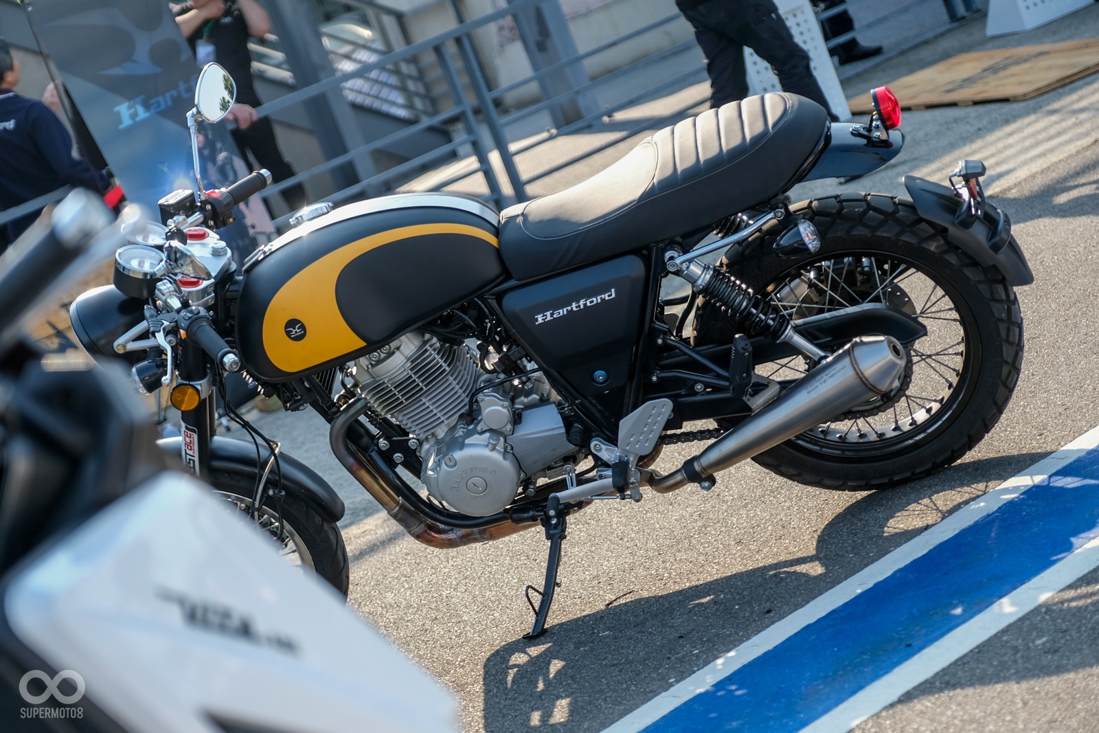 沒有花俏亮麗的外型取而代之的樸實而俐落的車身線條;乾重162公斤搭配上276c.c.單缸四行程水冷引擎,擁有17.6ps最大馬力與2.2kg-m最大扭力,並搭載雙迴路ABS煞車系統、LED日行燈眉與H4大燈燈具、前後13吋的輪胎配置。