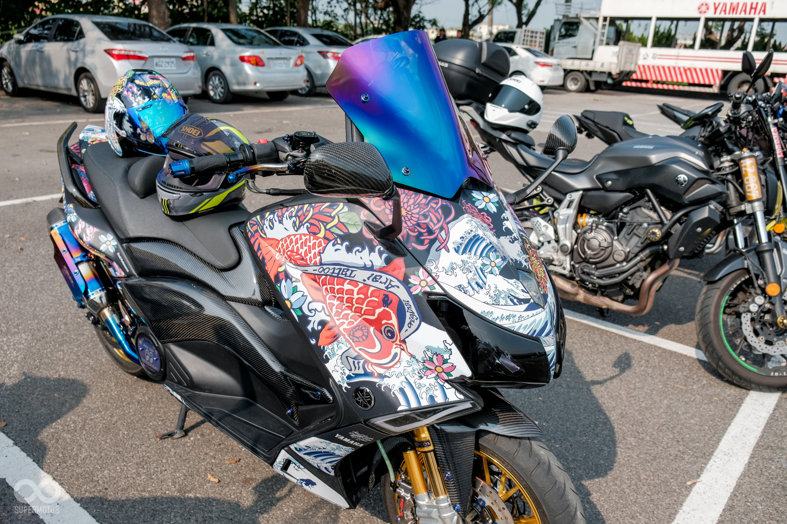 用餐完畢之後,車主們便與YJT女孩們一同前往竹塘慈航宮參加舉辦多屆的YAMAHA CAFE,現場除了有簡單的周邊部品可供挑選,也有YAMAHA咖啡車的女郎與車主互動同樂,除此之外在咖啡活動現場更能與YJT女孩遊戲,獲勝者便能獲得精美禮物。