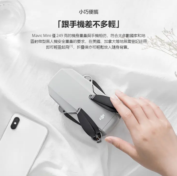 台灣目前的《民用航空法遙控無人機專章》已經於7月1日正式上路,目前最大起飛重量達250公克以上無人機都要註冊,而這次DJI推出的Mavic Mini因為重量剛好落在249公克,根據《遙控無人機專章》規定是無需進行註冊,這方面對於使用者來說算是更為便利的設計。