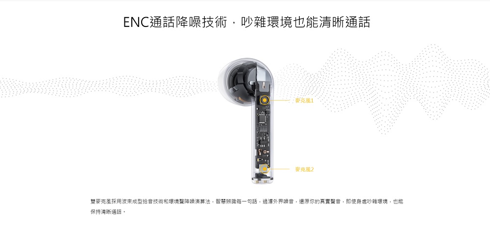 通話品質和降噪功能也是許多使用者在挑選耳機時相當注重的部分,Realme Buds Air搭載了ENC降噪技術和雙麥克風的設計,不僅讓使用者在通話中可以有效地降低外界雜音清楚聽到對方的聲音,還可以更清楚的收到使用者的聲音並傳達給對方,提供良好的通話品質。