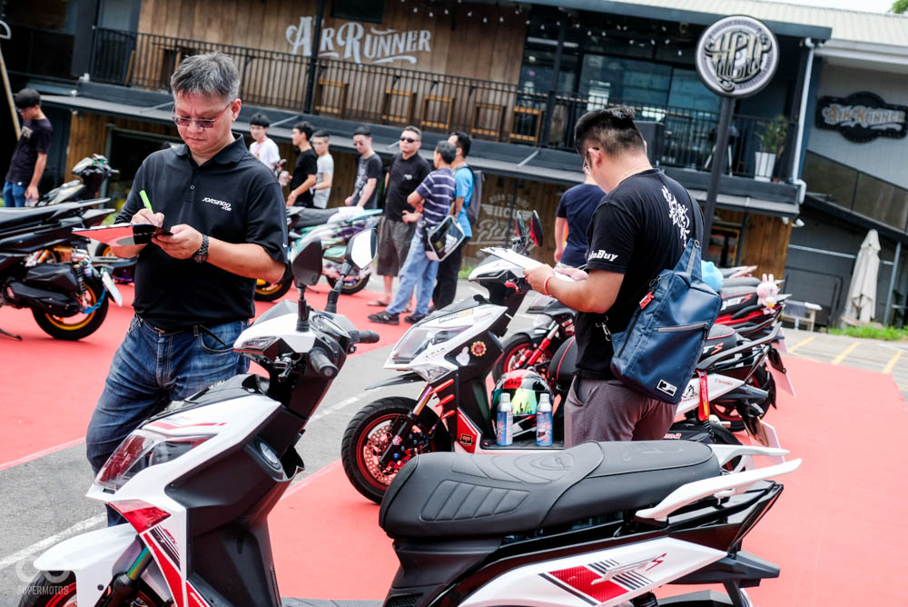 SYM與友站小老婆這次的活動準備得相當用心,當天每一位報名參賽的車友,在完成報到手續之後,都會先將愛車牽上專門搭建的「放大版火柴盒」才進行拍照打卡,隨後才由工作人員指揮將車輛停入會場展示;現場可以看到非常多的北部車友前來共襄盛舉。