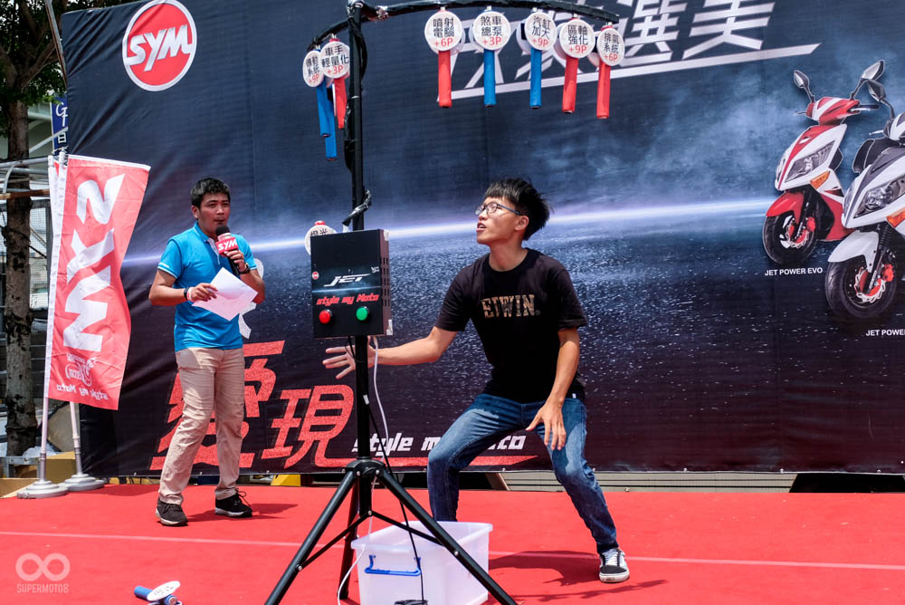 在評審和投票活動開始之前,主辦單位也特別準備了多項趣味活動,要來炒熱現場氣氛,同時更大方的送出許多精美、實用的禮品,首先登場的是看圖猜猜看的環節,現場的車友要根據螢幕上的圖片來猜出正確的車款名稱,而這次來參與的不愧都是SYM的車主,車友之間的搶答競爭非常激烈,可見SYM JET車友對於品牌的忠誠度與熱愛。