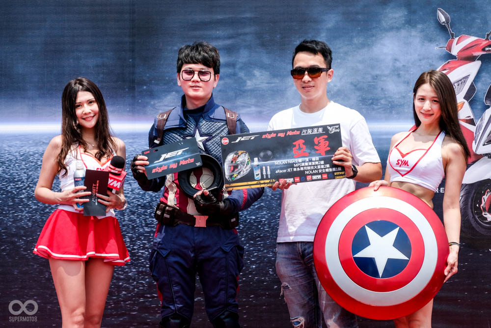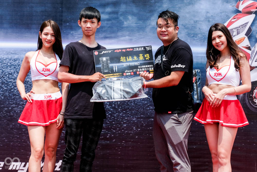 這次的獎品更是相當豐富,除了有精美的獎牌之外,更有NOLAN安全帽、MAXXIS輪胎、307P防水包、MotoA1 藍牙耳機、aRacer JET車系專用競技火星塞、MPS 安全帽清潔噴霧劑等豐富獎品;除此之外SYM更提供了大量的原廠周邊小禮品免費送給這次參與的車友,幾乎可以說是人人有獎。