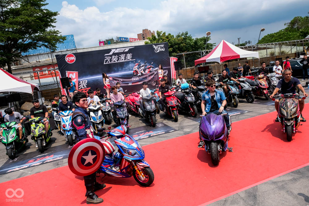 此外這次的活動甚至有超級爆改的直線加速風改裝作品現身,根據車主表示這台JET在改裝費用部分更是突破百萬,可見SYM JET車主們對於愛車的癡迷程度;另外也有車友將自己的愛車改成美漫超級英雄的座駕式樣,現場參賽的改裝作品可以說是創意十足,同時也看到JET車款的改裝豐富性和多樣性。