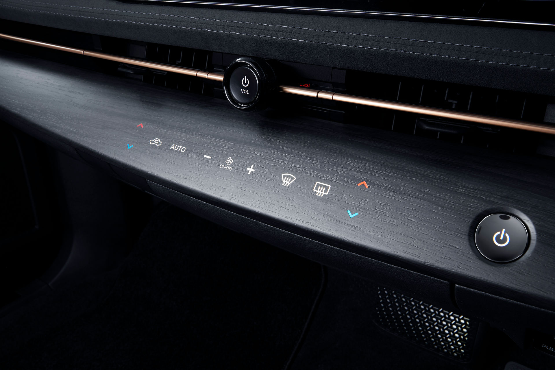 車室內走的是極簡風,中控台與儀表板以兩個12.3吋屏幕組成焦點,簡化不必要的按鍵並將重要的按鍵與飾板結合,也就是當車輛關閉時,所有的按鍵都會隱藏在細節內,啟動的時候背景光才會亮起。中央鞍座上有一個可以操控屏幕的把手,也把影音系統像是音量大小、上一首、下一首等控制鍵移到此處。車內四周環繞著氛圍燈,可變化不同顏色來表達此刻心情。後座有獨立出風口,椅背支援傾倒功能,行李廂空間有多種變化,得到最佳置物容積。