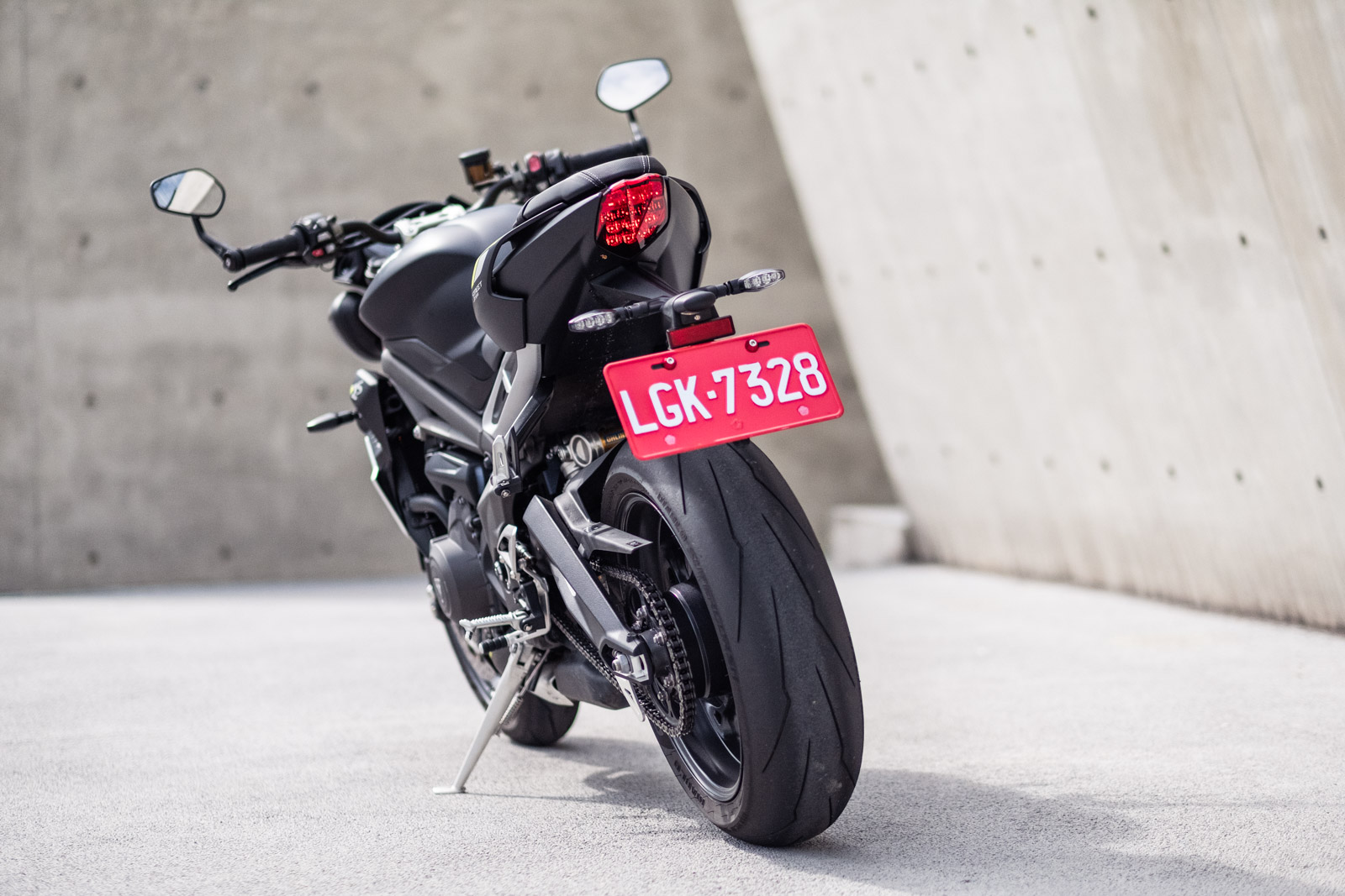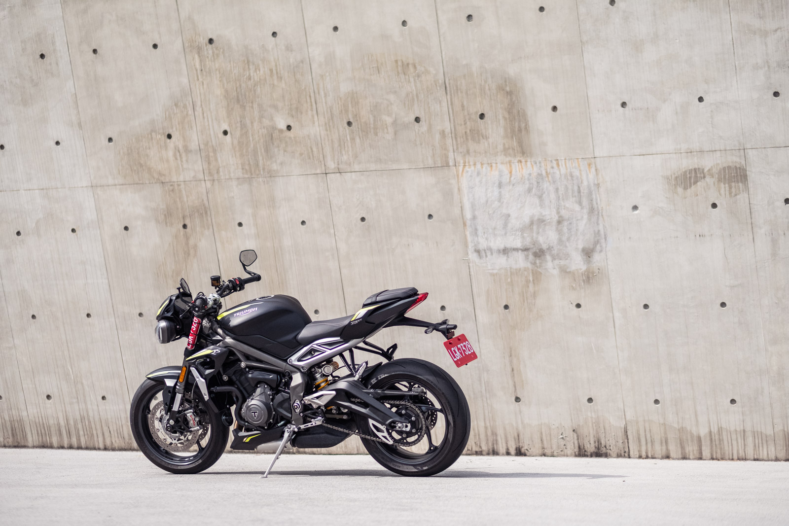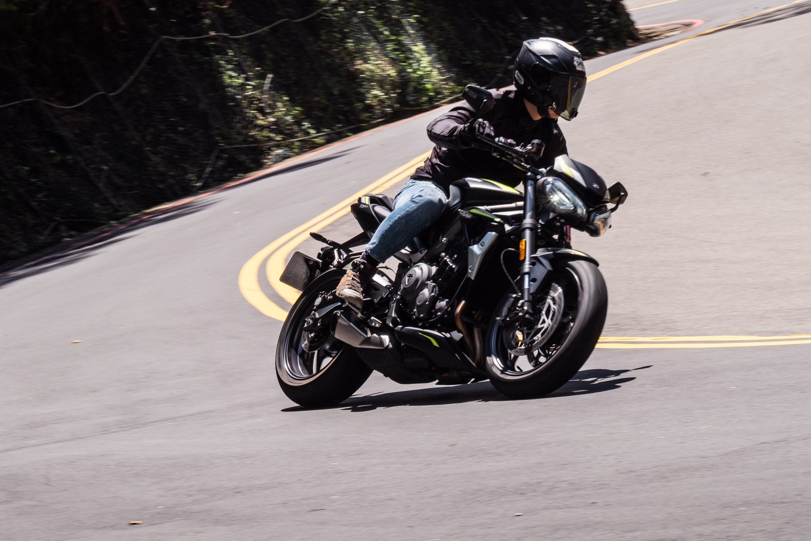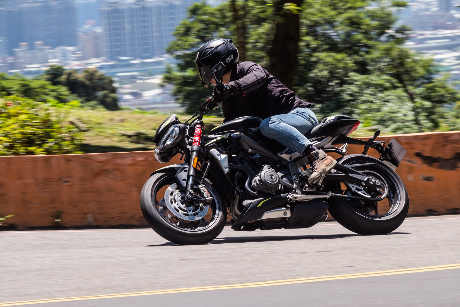 坐上Street Triple 765 RS並按下啟動鈕,除了5吋儀表會用華麗的動畫迎接你外,細膩的怠速品質與震動與日系三缸車有著明顯落差,但825mm的座高確實有些高聳,加上較為前傾的椅墊、略低的把手設定,在你踩入一檔出發前,就可以感受到即使765 RS沒有整流罩,但骨子裡可是台扎實的運動車款。