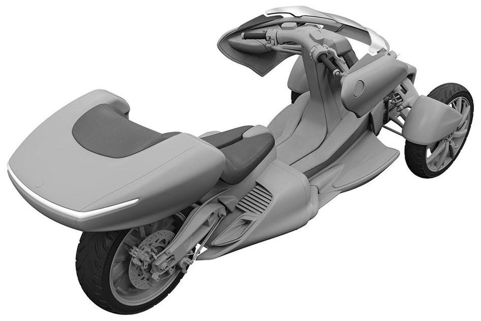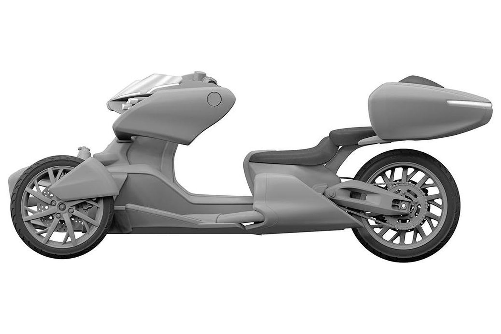 專利圖上的外型,也比起MW-Vision更為實用,例如看起來已經可提供雙人一同使用這台三輪車,消失的置物空間透過後方龐大的尾箱填補空缺,也賦予MW-Vision不同於Tricity/NIKEN,呈現出更為巡航、舒適的車款設定。