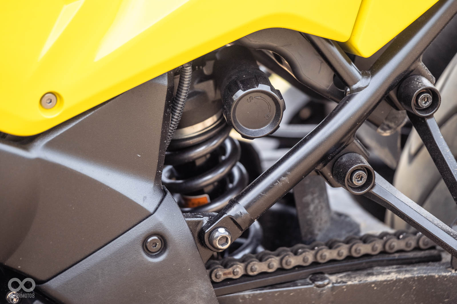 除此之外,V-STROM 1050XT採用鋁合金環抱車架,配上用料頂級的前全可調懸吊,與後方的預載、回彈阻尼可調單槍多連桿避震器呼應,而且後避震的預載調整也與多數多功能車相同,可透過向外延伸至車側的旋鈕調整。相信所有騎士都可以快速找到合適的設定值開心騎乘,另外也可以在雙載、單人騎乘時快速調整後避震狀態。