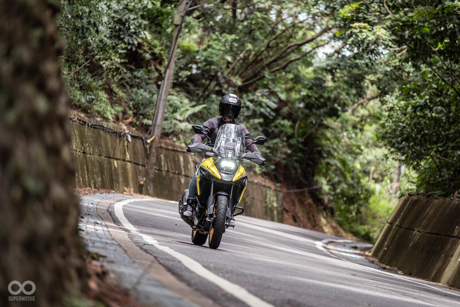 在眾多的電控系統加持下,我們迅速脫離市區且加大油門開度,會發現V-STROM 1050XT比起CRF1100L更為瘋狂的加速表現,彷彿一隻黃色的大老鷹在地面上加速狂衝,一瞬間你甚至會懷疑這台車真的是主打旅遊、甚至越野的多功能車款嗎?