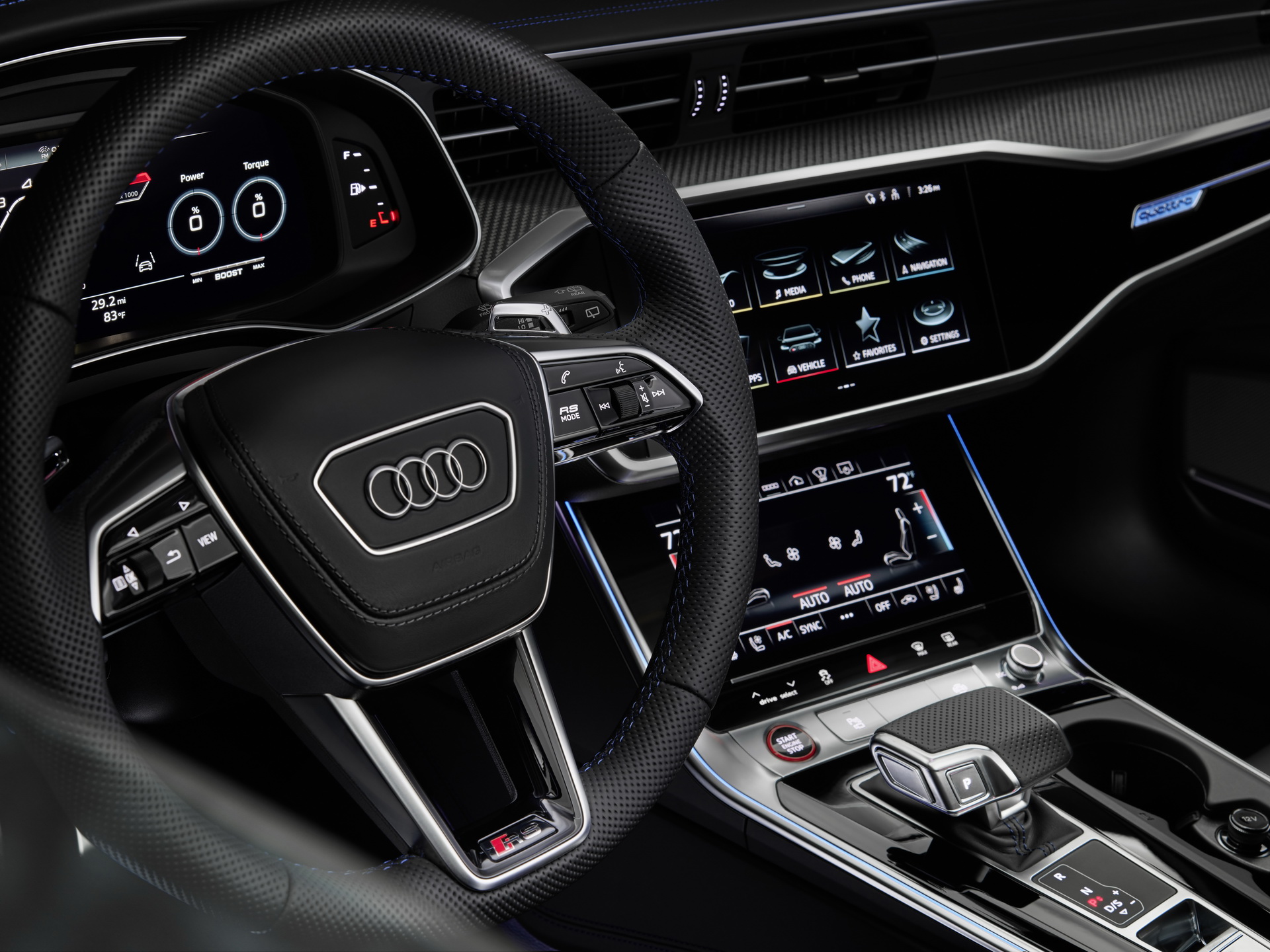 特別的RS6 Avant內裝用上高檔次的材質點綴,獨家Valcona高檔皮革賽車座椅,結合牛仔藍色車縫線,再利用碳纖維飾板來增加強烈運動感,另外還有專屬打孔方向盤、RS腳踏墊等,都是RS6 Avant車上夢幻逸品之一。性能車上主被動安全也不能少,標準配備制動巡航系統以及車道維持等科技項目,特仕車另增加後排加熱座椅、抬頭顯示器、電動啟閉後尾門、高檔音響等設備。