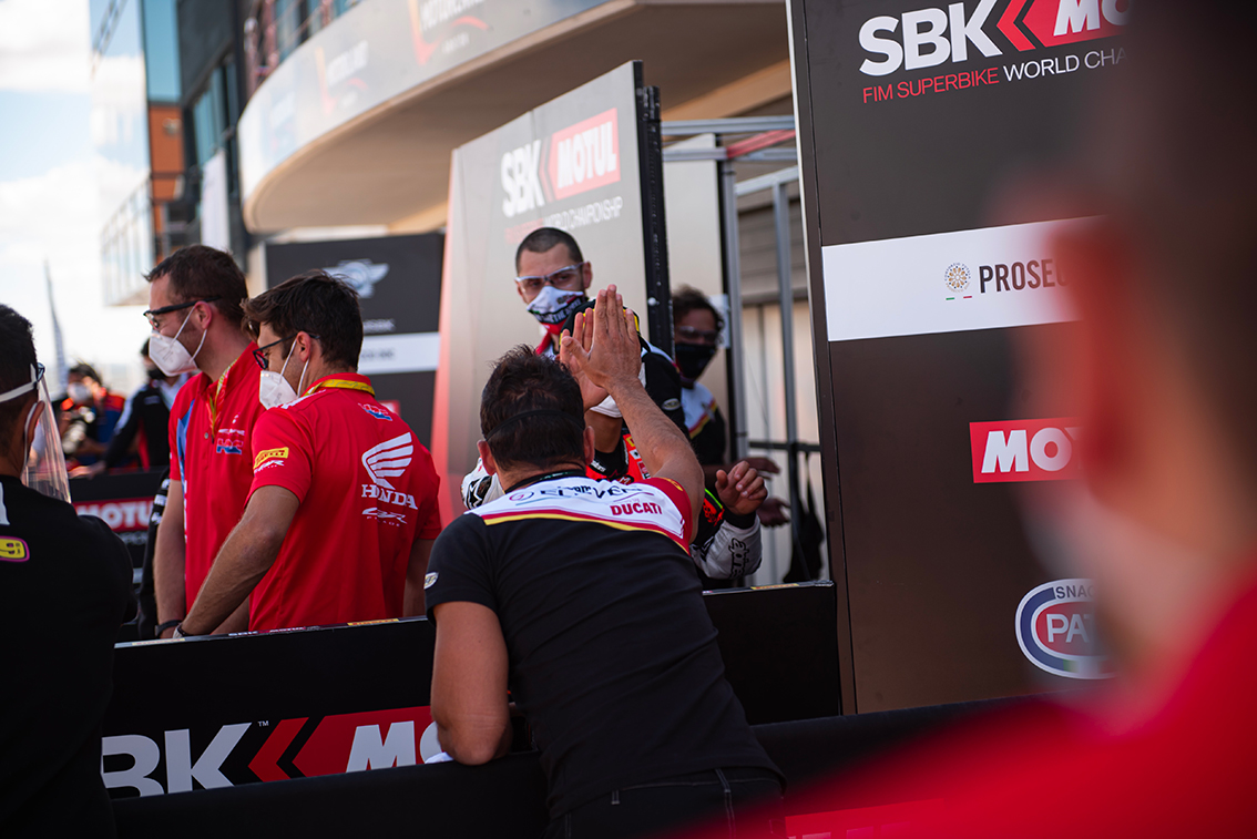 就連WorldSBK的衛星車隊也一樣兇猛!Aragon的第二戰, Go Eleven Team的DUCATI衛星車隊車手Michael Ruben Rinaldi拿下第三名的成績,無庸置疑地,這也是獨立車隊中排名第一,並且讓義大利國旗重新回到WorldSBK的頒獎台上。