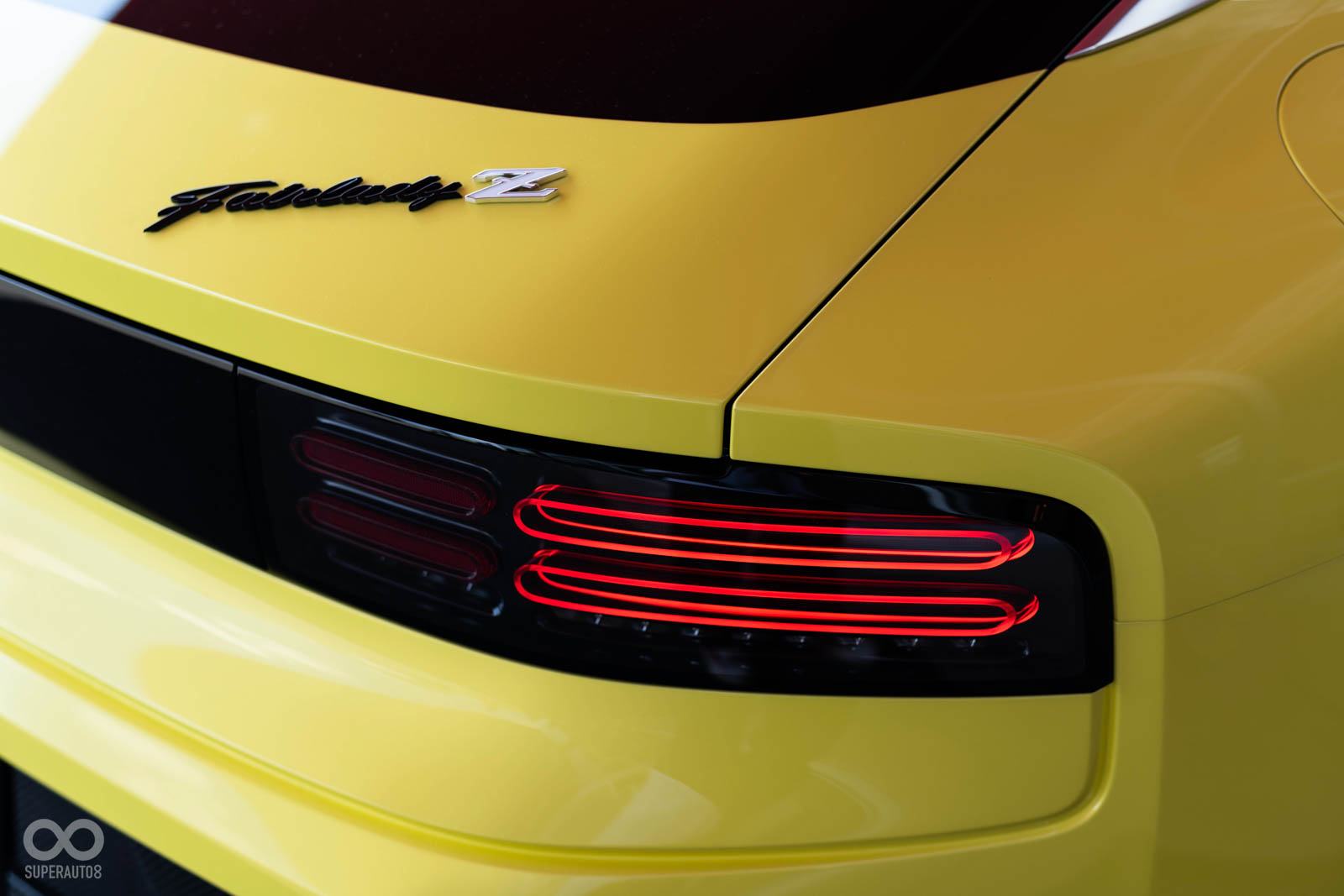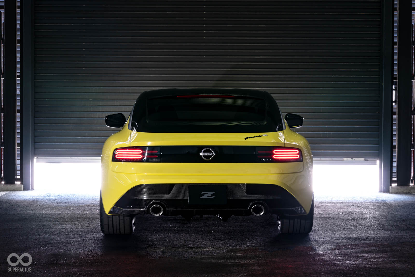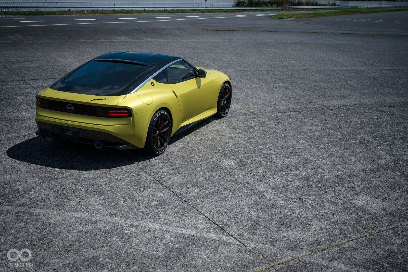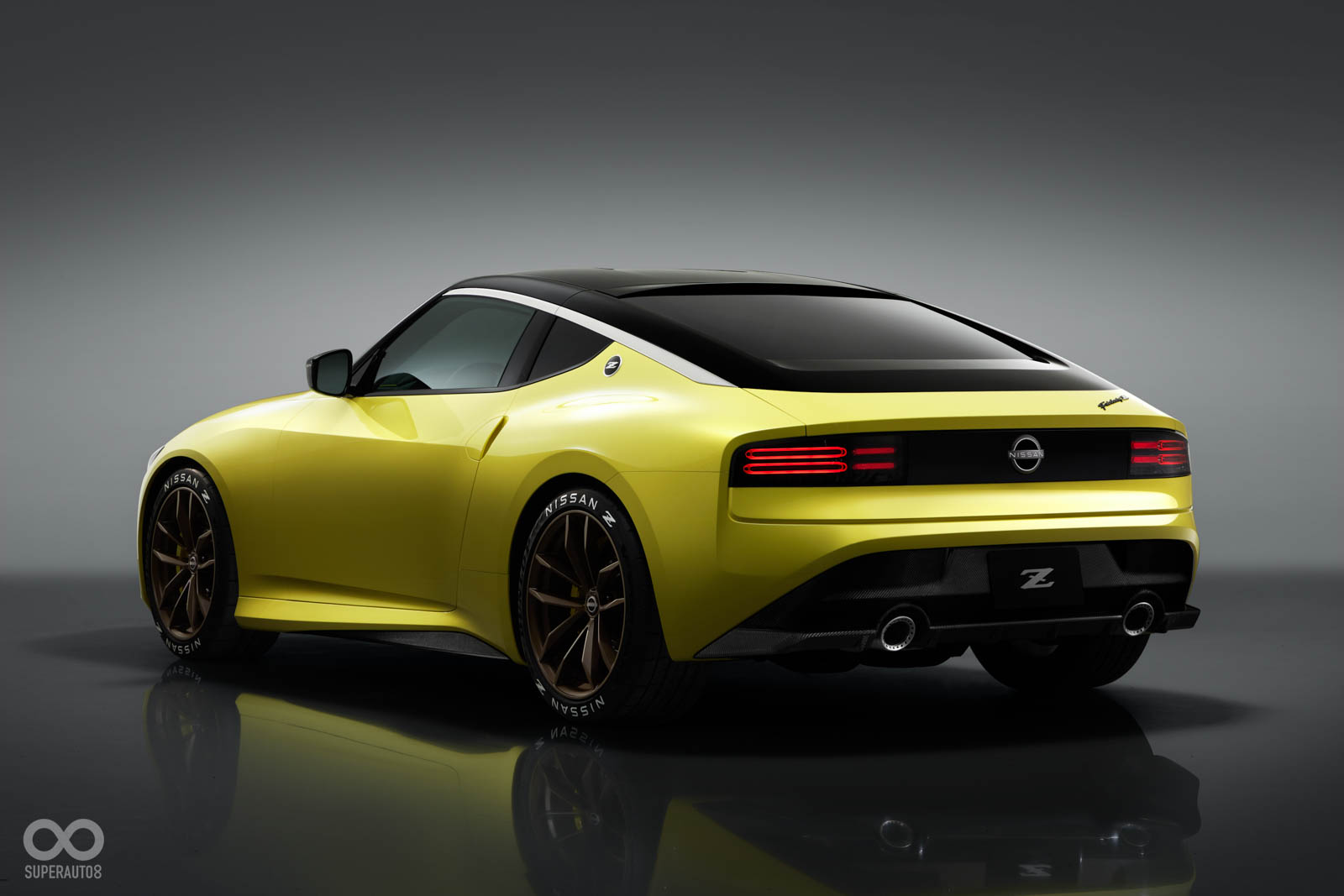 車側擁有經典的長車頭、短車尾設計,Nissan也強調車尾比起車頭略低的Z系列傳統,也可以在Z Proto上見到。來到車尾,眼尖的車迷就會發現那來自300ZX設計感的尾燈,不過被現代化的LED重新詮釋。最後黃色的車身與黑車頂搭配,也是取自S30、Z32的靈感。
