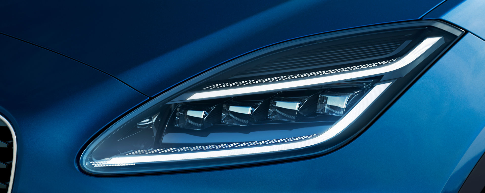 從外觀設計開始,Jaguar特別針對E-Pace前保桿做小幅度修正,改變新的格柵造型與鑽石網狀細節,不仔細看還真的不易發現。另外,還配備全新的LED頭燈,配備「雙 J」造型日間型車燈,採用LED技術營造出時尚感。至於車尾,改變的幅度也是在於細節部分,像是有燻黑的尾燈,尾燈內部光源從新排列,並導入新的LED光源,這靈感來自全電動車I-Pace,內部造型稍做修飾。
