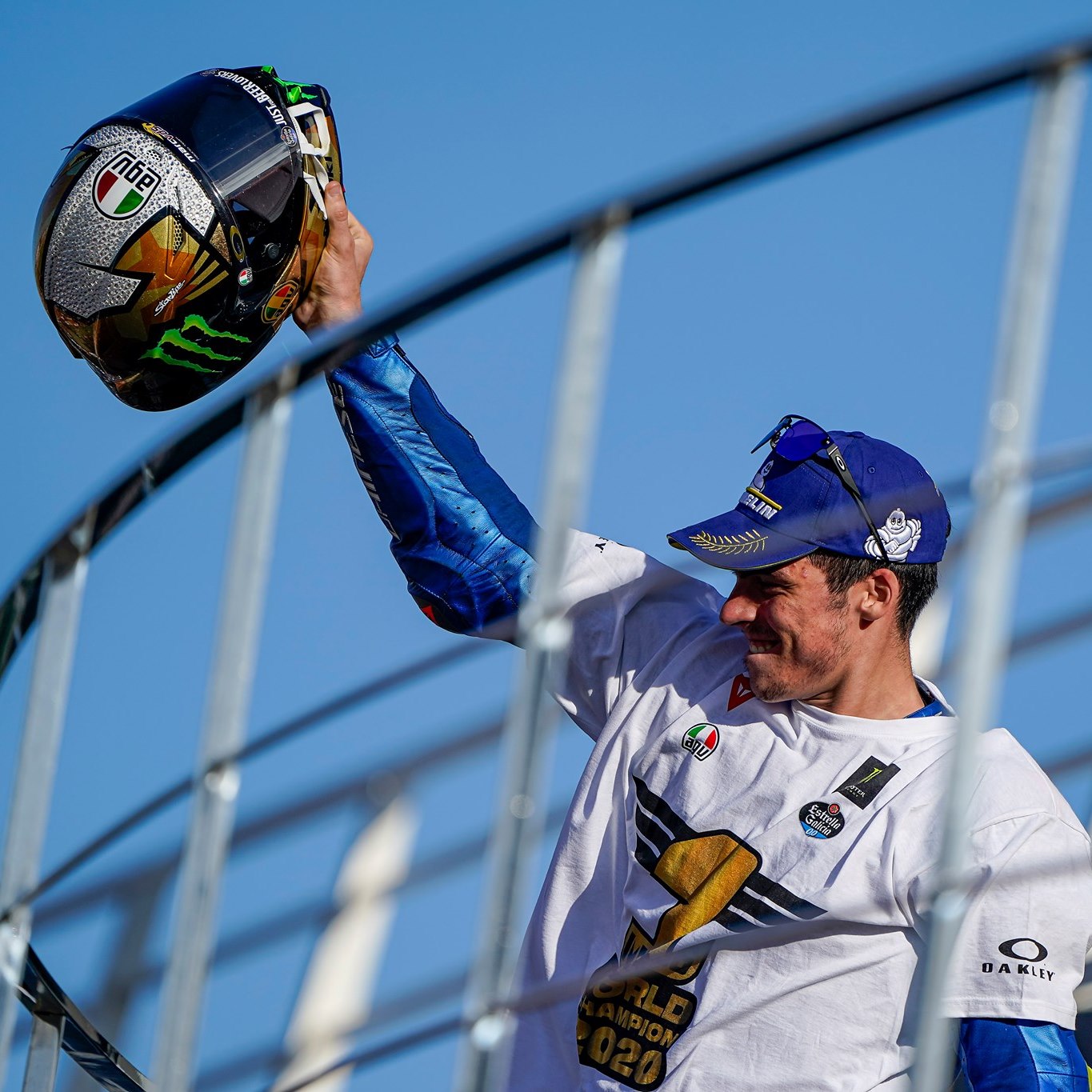 當天有收看轉播的朋友,相信Joan Mir衝過終點線的那一刻,心中都是無比的感動,隨即AGV也準備金黃色的冠軍安全帽讓Joan Mir換上,展現出無比的冠軍風範。