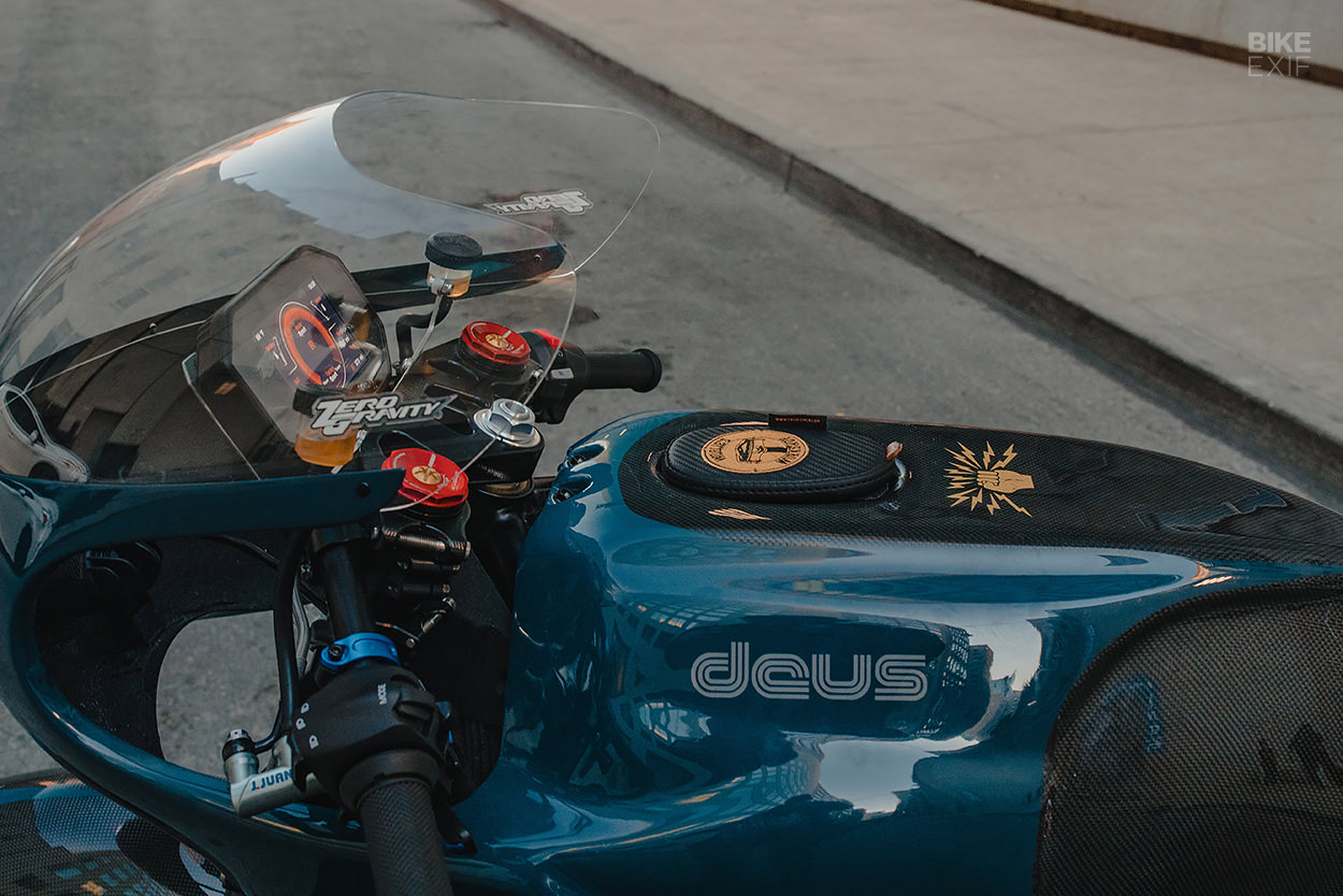 而美國ZERO也相當快速的就為DEUS Ex Machina總部提供了全新的ZERO SR/S,「我們不對DEUS Ex Machina進行任何改裝建議,」ZERO公關負責人Dan Quick說,「我只是把車子交給他們,然後跟他們交代──