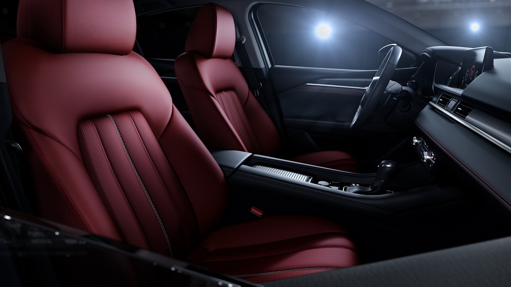 正2021年式MAZDA6導入Wagon黑艷版,於19吋鋁合金輪圈及車外後視鏡注入黑色元素,打造性格更加強烈的運動氛圍;座艙內部在酒韻紅真皮座椅、座椅中央灰色縫線、內裝紅色縫線與爍黑髮絲紋飾板的交相映襯下,觸動你心中渴望奔馳的駕馭靈魂。