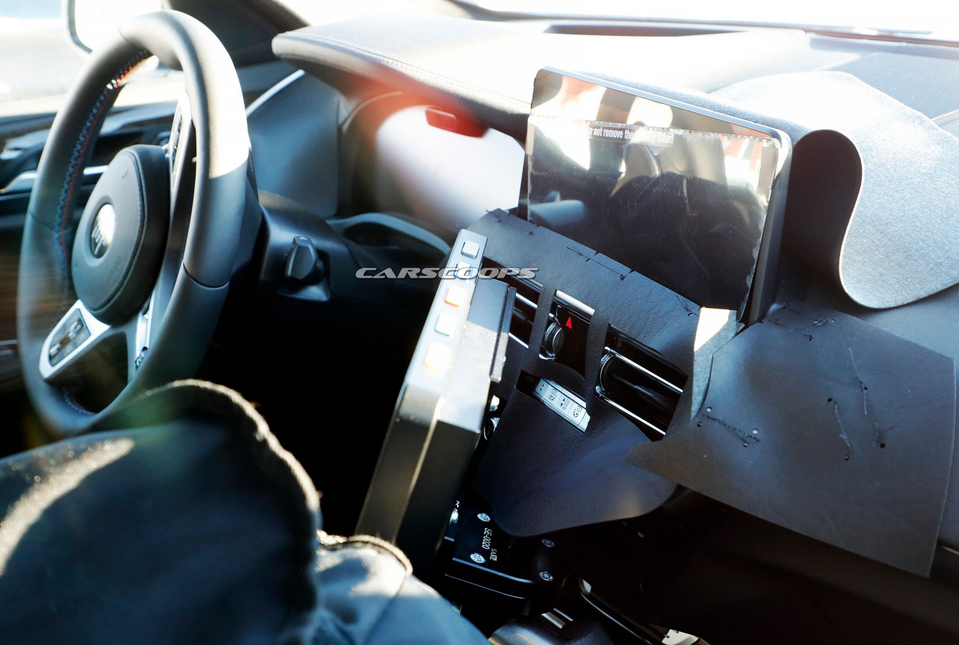 首先,照片中部分露出的空調出風口已改成和G世代3系列相同式樣,並將顯示幕及各項按鍵都加以整合,比起小改款前更加簡潔且帶有科技感。然而,中央螢幕並沒有比照3系列一樣跟儀錶台區域相連成一體,而是維持現行款的獨立設置,但尺寸從10.25吋放大至和5系列相同的12.3吋;整個內裝就如同將3、5系列的中控台綜合在一起。