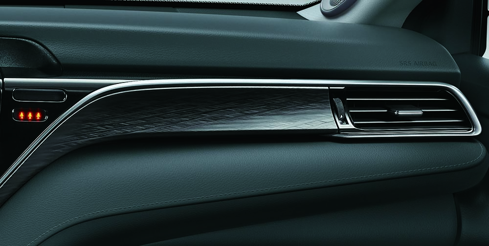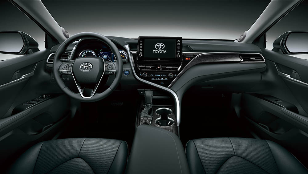 內裝設計上,透過全新設計典雅木紋中控飾板,提升車室精緻質感氛圍;懸浮式主機(汽油尊爵以上)的設計使駕駛操控主機時,減少視線移轉幅度,增加行車安全。在舒適配備部分,CAMRY升級搭載9吋觸控式影音主機附原廠衛星導航系統(HYBRID旗艦),輔以Apple Carplay及Android Auto(汽油尊爵以上)智慧型手機連結功能,帶給消費者更科技實用且豪華舒適的乘坐體驗。