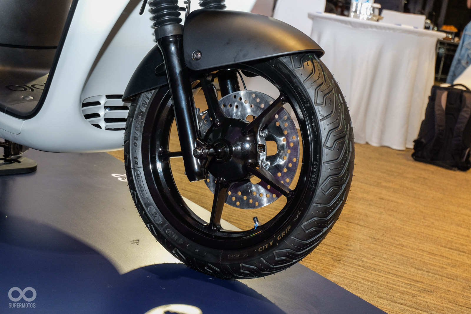 對比過往Gogoro 2 Plus使用前14吋、後13吋的輪圈,Gogoro 2 Premium除了全數更換為12吋配置換來更親民的座高,前後輪圈採用輕量化設計(減輕前後25.3%、22.3%重量)。目前Gogoro車款皆配有的側柱斷電開關也在中柱設置感應器,現在你架起中柱車輛也會自動斷電。