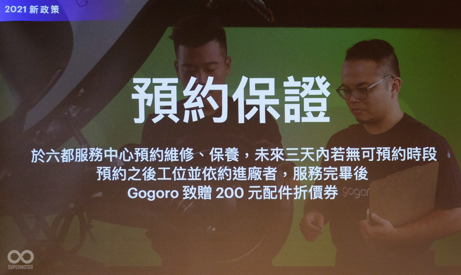 除了推出新車外,Gogoro也針對目前的服務做出新承諾,過往被詬病的維修預約過長已經被縮短至平均三天,Gogoro近一步祭出優惠,只要你在六都維修中心預約維修等待三天以上者,完成保養後就贈送200元配件金。