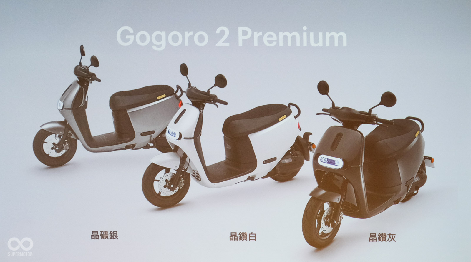 過往Gogoro 2 Plus大多使用多彩的配色,在取代意味濃厚的Gogoro 2 Premium上僅提供晶礦銀、晶鑽白、晶鑽灰三種配色,實車質感相當高雅,與過往年輕活力有極大差異,Gogoro也為這台新車款打造專屬音效提升尊榮感。
