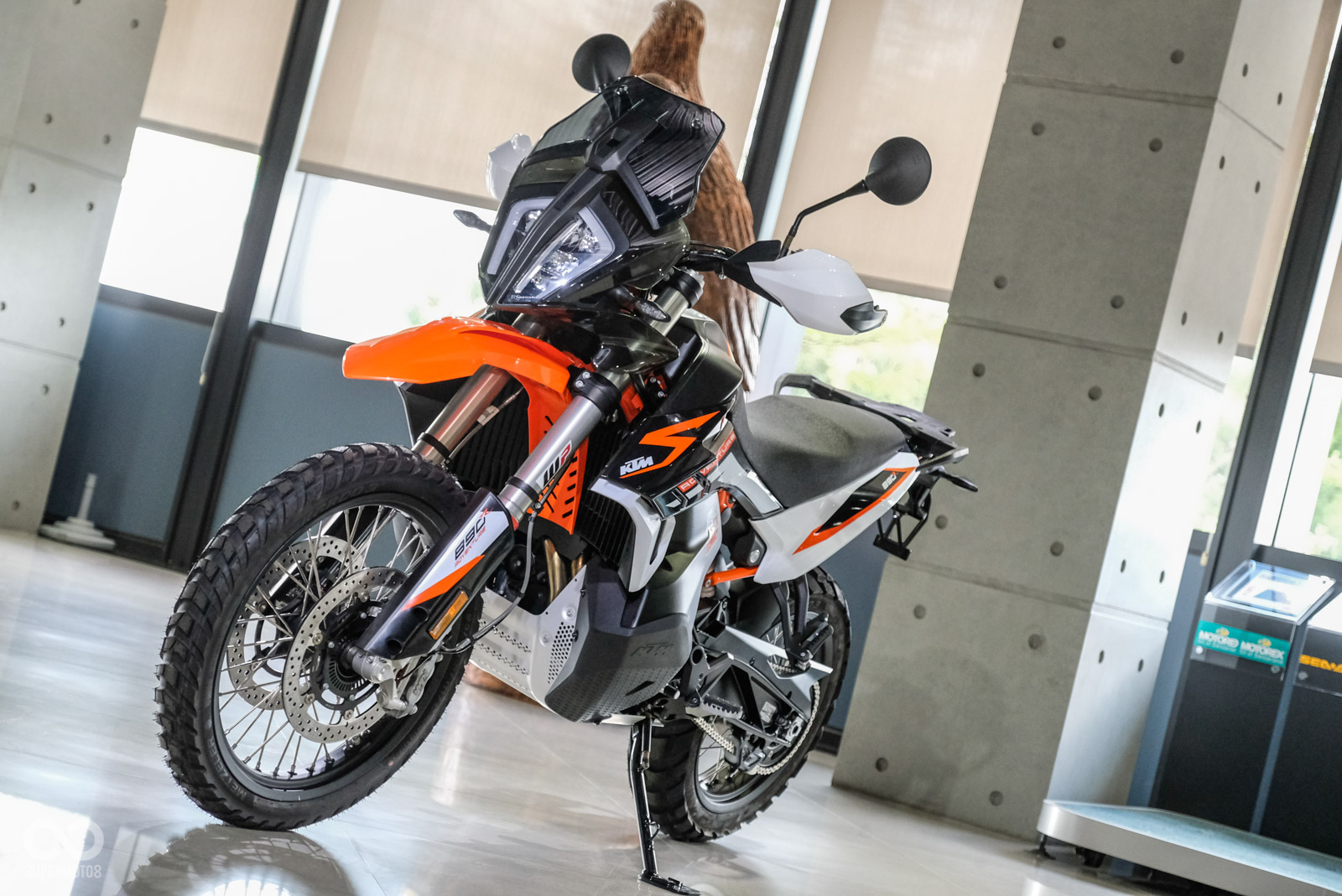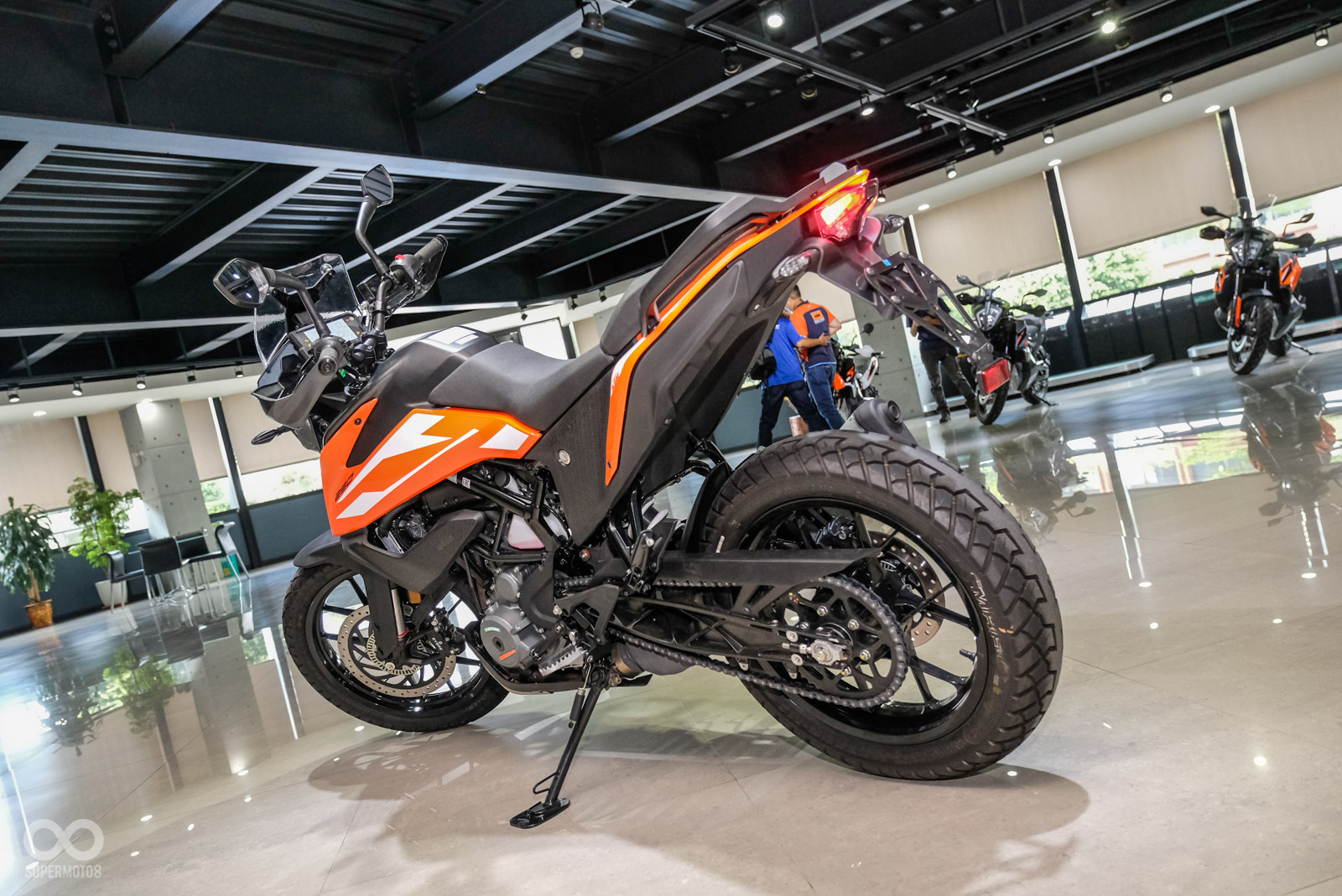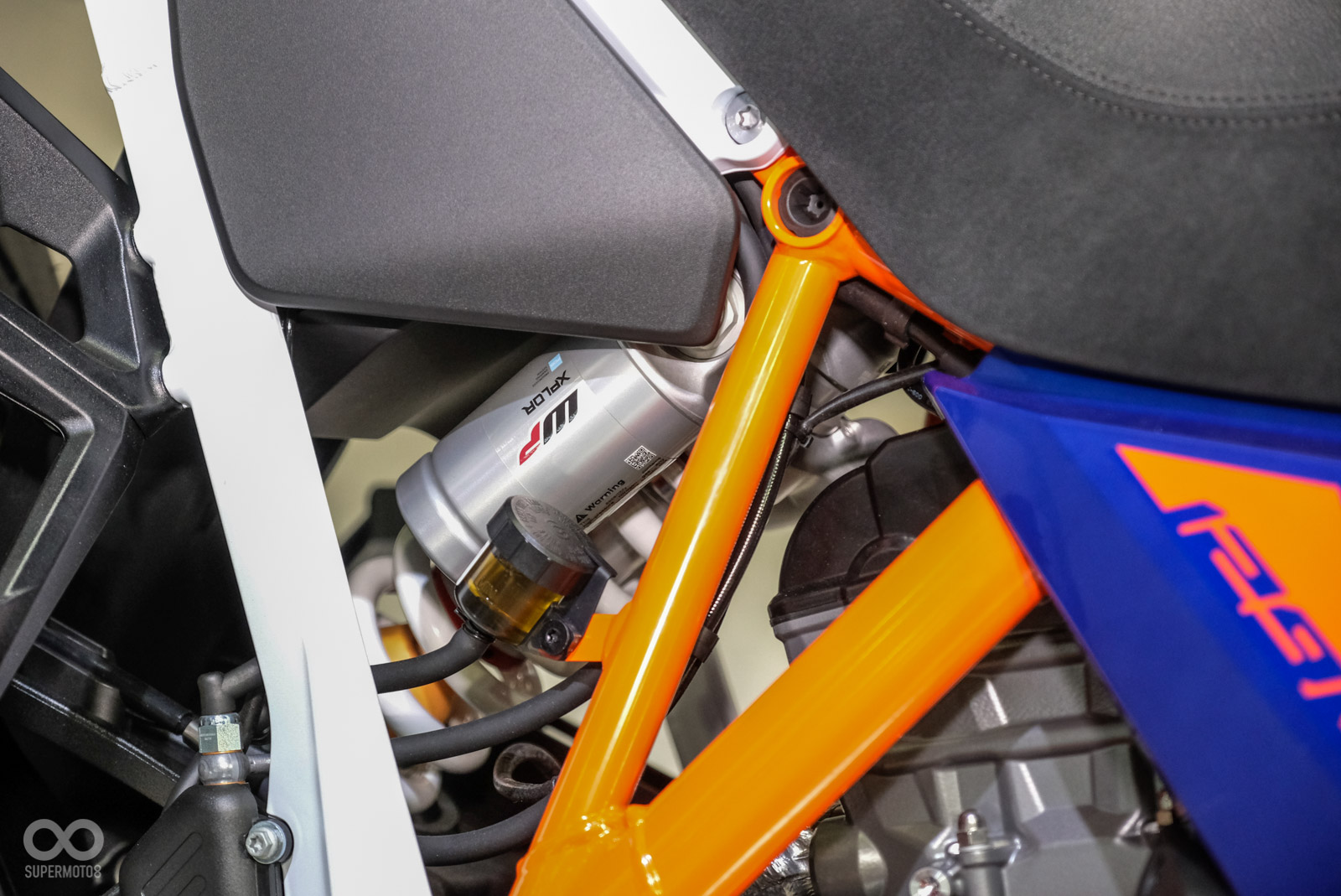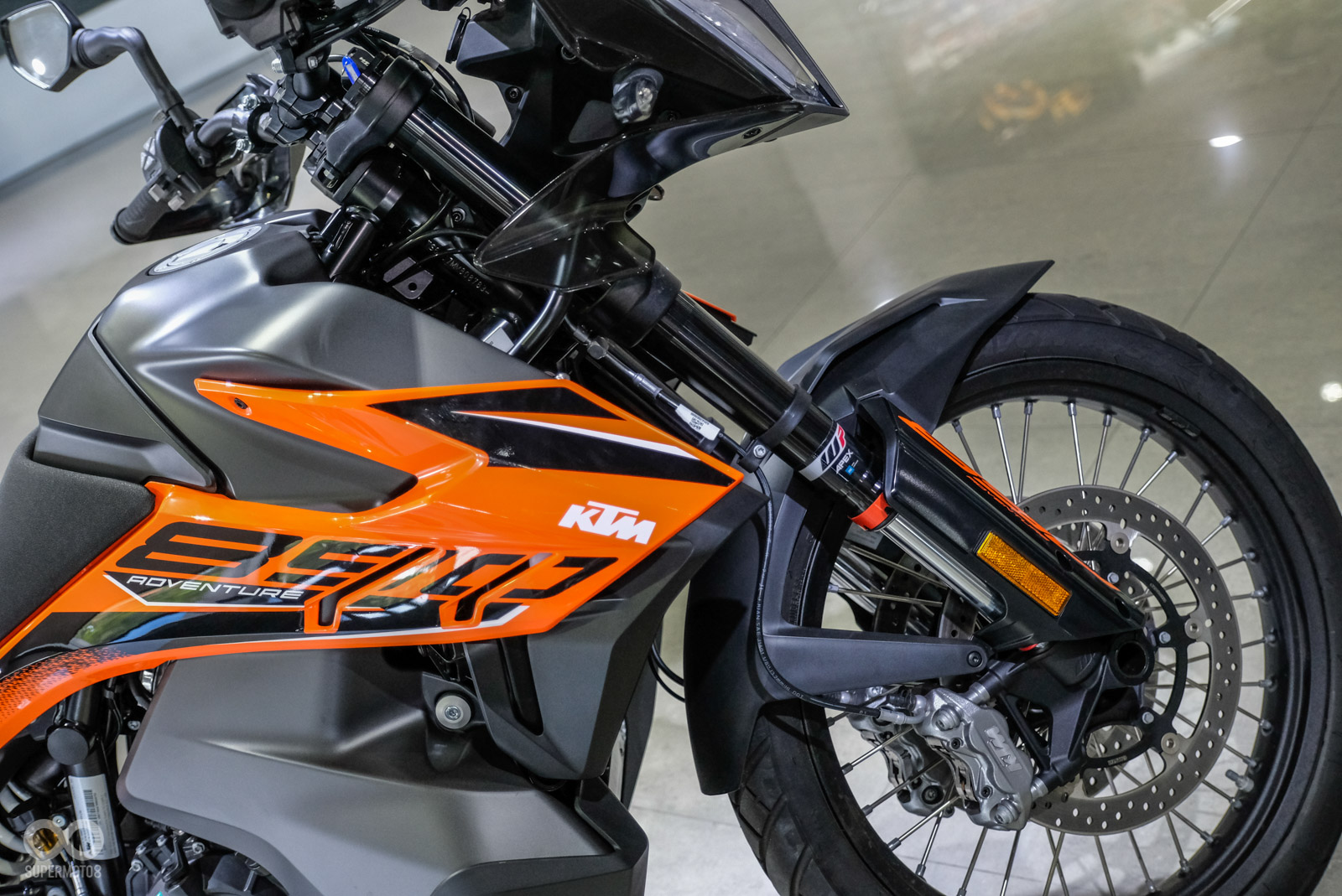 車架也透過調整讓重心更集中,懸吊使用WP APEX SAT(Semi-Active Technology)半主動懸吊技術,KTM強調這是WP旗下全新世代的電子懸吊,阻尼調教更強,前後行程皆為200mm,且可以偵測6D車輛感應器數據。此外電控配備依舊滿載,例如:彎道ABS、內建胎壓偵測、進退快排、MTC循跡控制、OFFROAD駕駛模式。