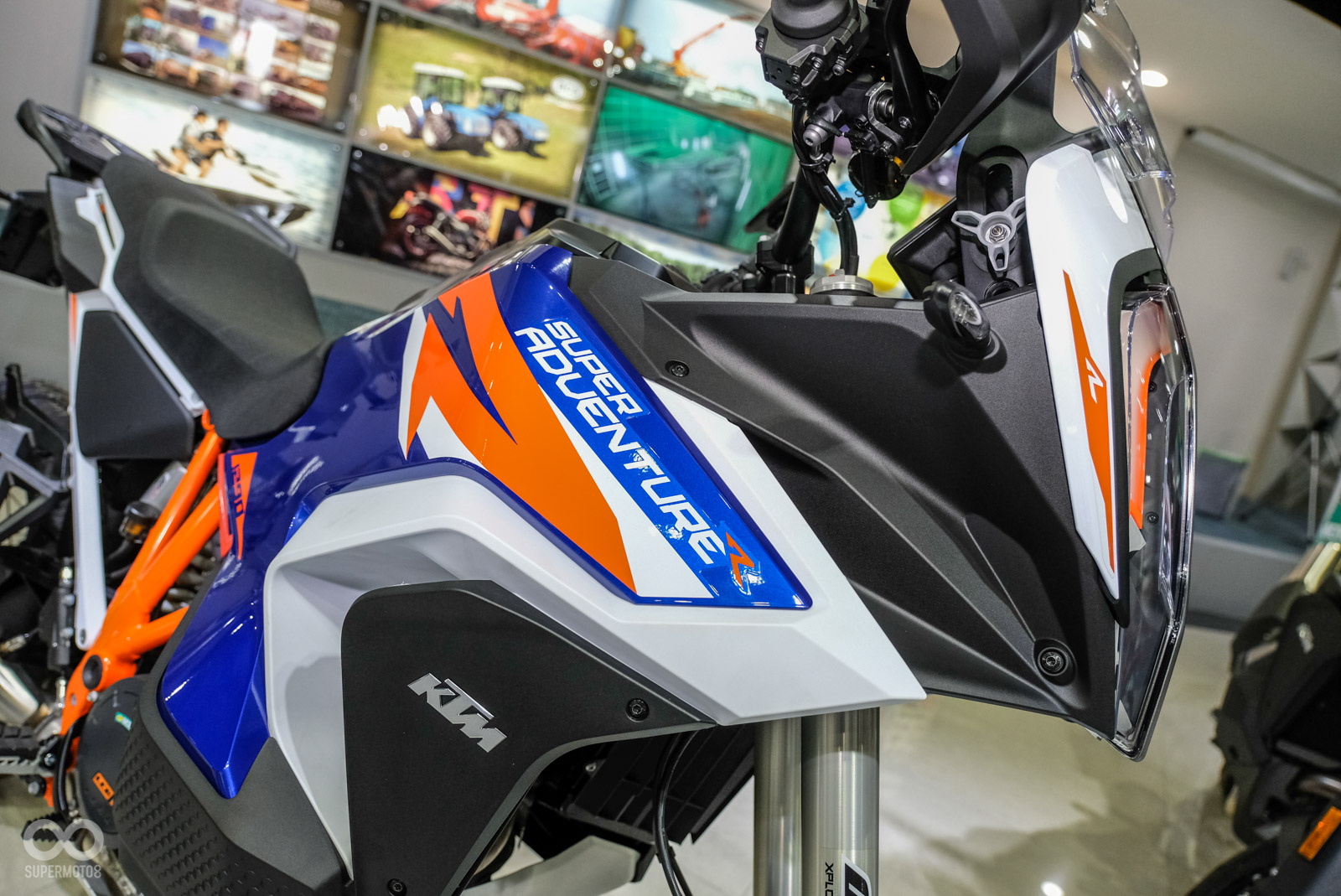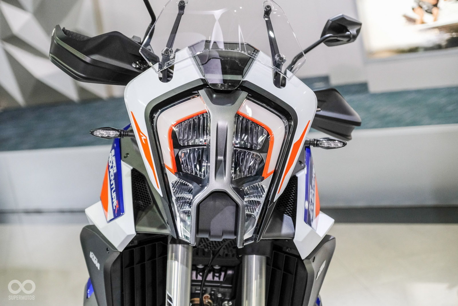 外觀上1290 SUPER ADVENTURE S幾乎是進擊巨人等級般的高大,本次改款依舊維持驚人的氣勢感受,例如那大的有如異形的家族化大燈、距地高223mm更是高人一等感,這車幾乎可視為機車界的Mercedes-Benz G-Class。23L的超大油箱外型變得更為立體,1,301 c.c.引擎旁整流罩面積也隨之加大並避免把熱氣直接吹向騎士小腿。