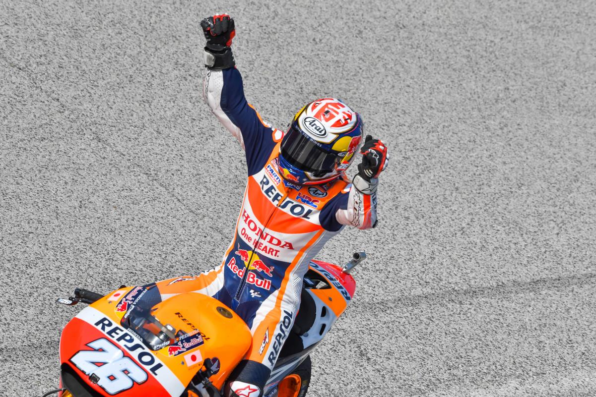 小鯊排位成績並不理想,排名第8的他正賽時只能由第三排起跑,但憑藉著輪胎選擇與沉穩的駕駛風格,在比賽的中後段時保有良好的競爭力,讓他能夠快速的追擊,先後輕鬆的解決掉他的隊友Marquez與Lorenzo,在比賽剩下最後7圈時更一舉超越領跑的Rossi奠定勝基。
