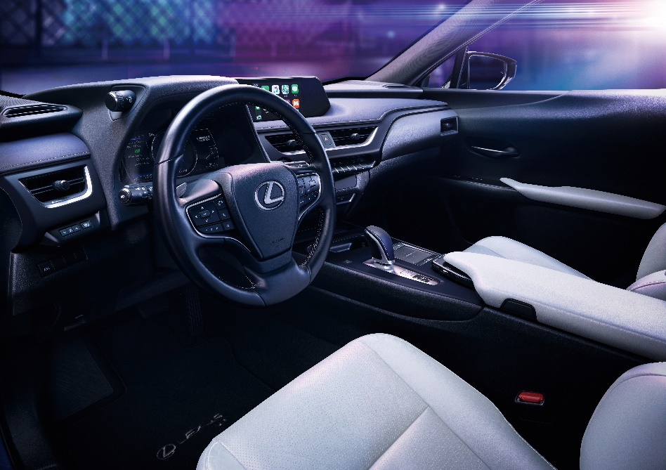 內裝方面UX300e承襲LEXUS長久以來的職人工藝和高質感的內裝鋪陳,排檔桿升級為LC樣式的線傳式設計,車室質感和簡潔度近一步提升;另外也配有手機無線充電、Smart Access智慧車門啓閉控制、腳踢式電動尾門等都列為標配,雙前座也具備冷熱通風座椅,後做也導入加熱功能,車內還加入nanoe™ X空氣清淨系統。