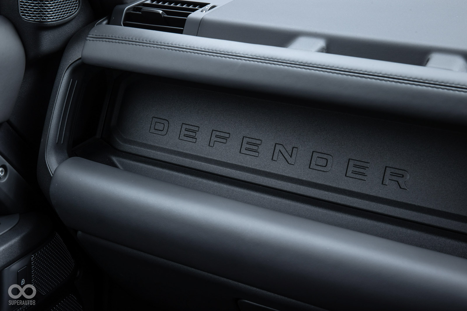 Land Rover Defneder 90 V8 Carpathian Edition特仕版車身採頂級喀爾巴阡灰金屬漆搭配緞光防護膜包覆,引擎蓋、尾門與車頂也同樣採用亮澤黑點綴,輪框同樣換上視覺張力極大化的22吋亮黑色鋁合金輪圈,煞車卡鉗則以V8車型專屬Xenon Blue氙藍色卡鉗,外觀採用一系列專屬套件宣示其位居Defender車系旗艦的王者地位,從外觀就能一眼感受到必須敬畏三分的強烈肅殺氣息。