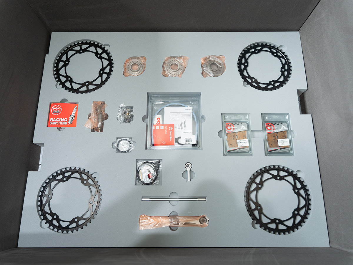 這次在日本Yahoo拍賣上出現的RC213V‐S是編號第58號的珍稀猛獸,行走里程僅有少少的191公里,全車保持原廠狀態(廢話,這車不需要改了吧?),當時需要加價購買,解封日規馬力與噪音的賽車套件更是完全未使用,整套全新直接送給你。