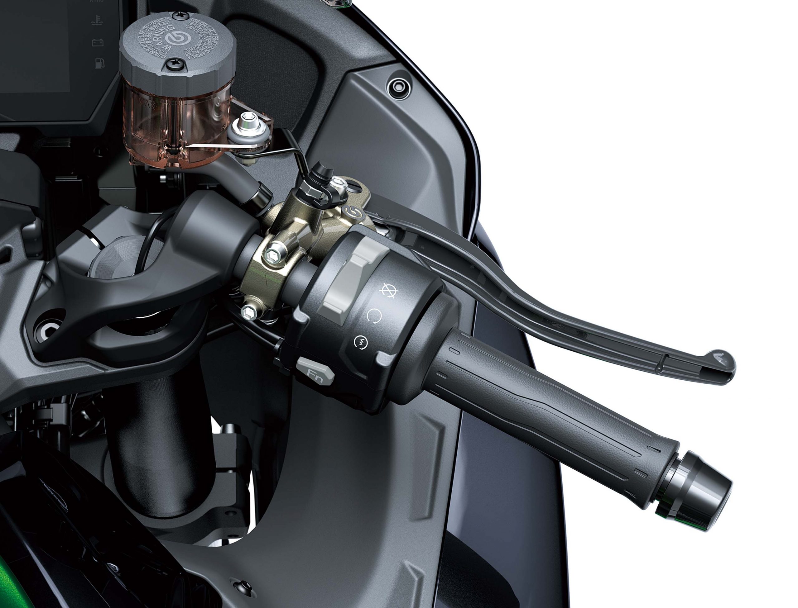 在便利系統部分,全新的H2 SX SE標配了KIPASS免鑰匙系統,同時還有TPMS胎壓檢測系統,不論安全性或是便利性都有效提升,而握把加熱器也成為了標準配備,同時也可以看到因為電控系統的大幅增加,其手把處有更多的按鍵,另外在煞車拉桿也採用了全新的形狀,為的就是配合加速感應器以及把手加熱器的設計不同,值得一提的是ECU的更新不只是動力曲線更為亮眼,連帶著快排系統也跟著進化,現在轉速到1,600rpm以上就可以使用,換檔更為便利輕鬆。