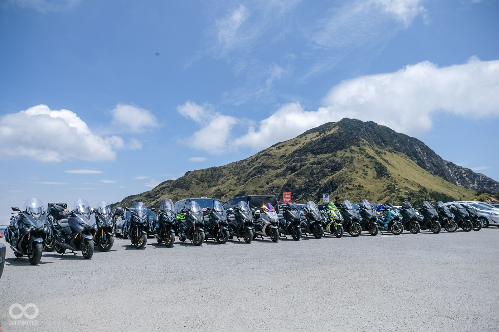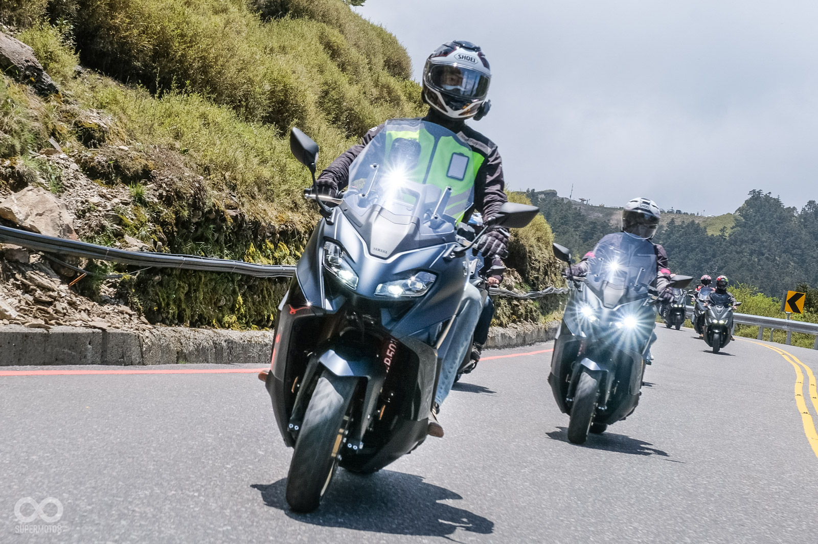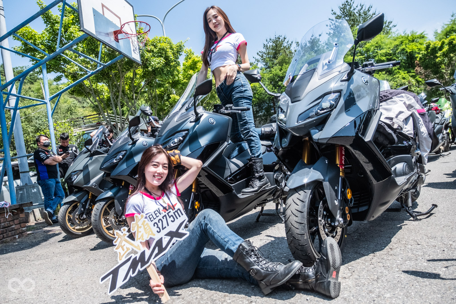 本次活動結合YJT女孩一同出席,當天可以看到許多車友聚集在南投清境一帶的民宿停車場集合,現場「56台新舊款TMAX」將一起參與這次的武嶺一日遊。