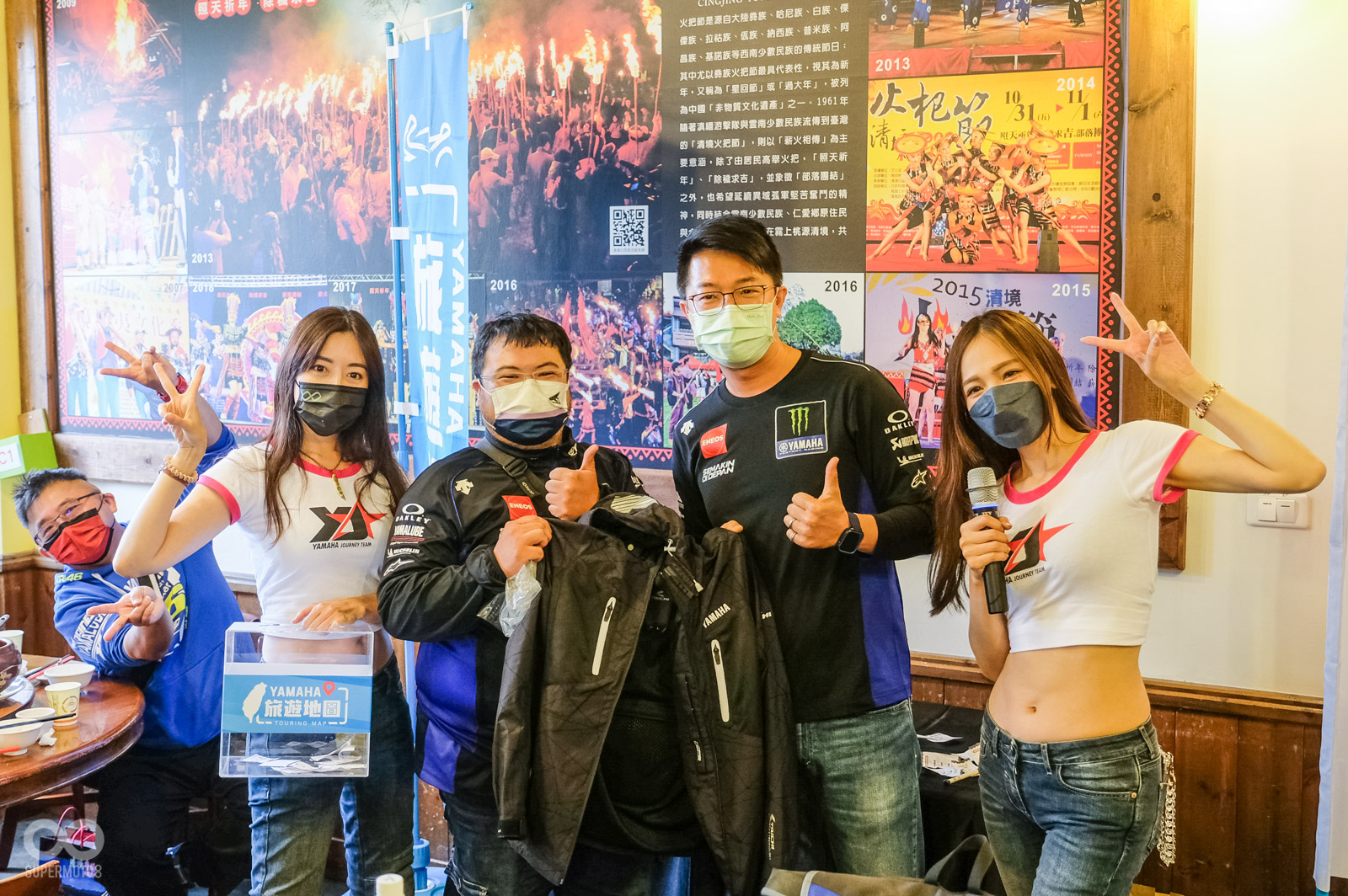 本次行程的最後一站,YAMAHA安排所有車友來到清境地區知名餐廳「魯媽媽雲南料理」用餐、抽獎,為了這次5/6的車聚活動YAMAHA提供品牌鴨舌帽、廠隊服飾、手套等多項好禮,但最吸引人的絕對是穿在YJT女孩身上這件,RS TACHI與YAMAHA聯名的防摔外套,小編在現場看了也覺得相當羨慕呢!