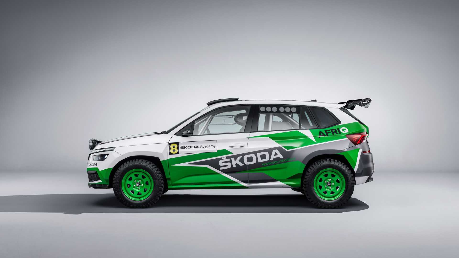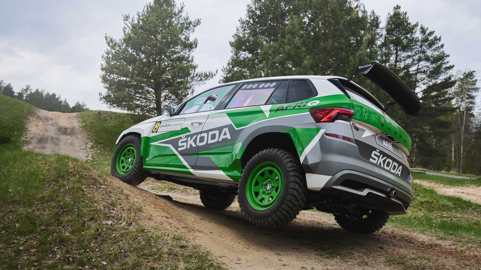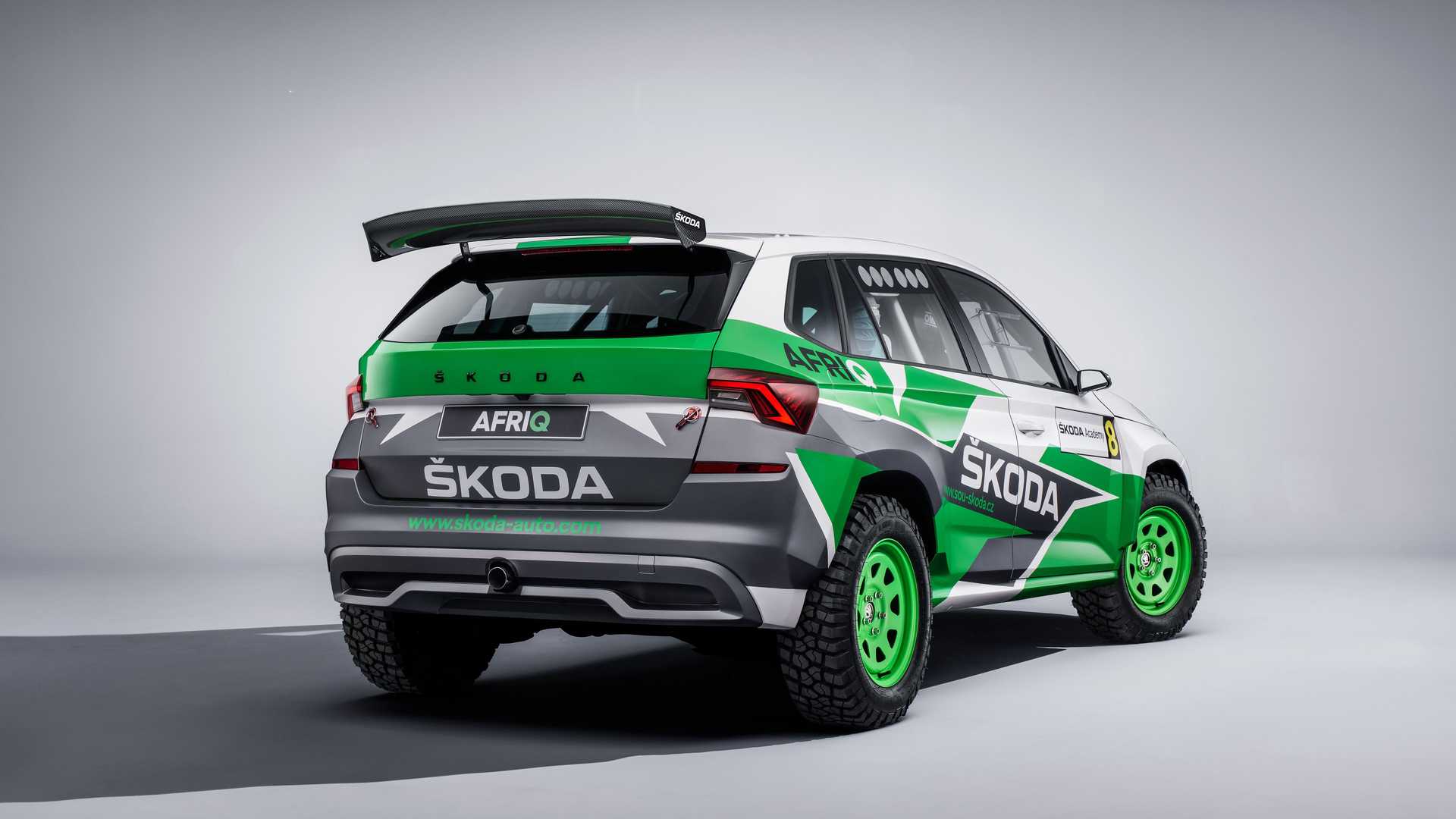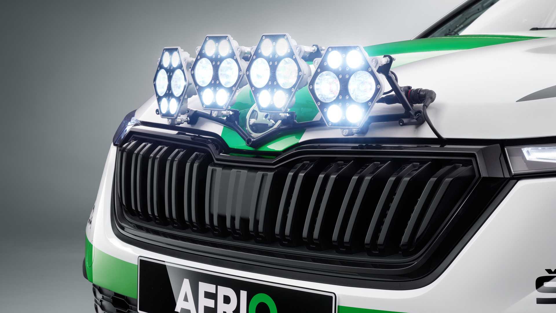 其實一眼看到這輛Afriq會認為他長得有點像Fabia,這是因為這輛車的塗裝是源自於Fabia Rally2 evo的設計,同時車輛也把後門焊死,現在這輛車僅有雙門配置,同時車內也焊上防滾籠讓車身鋼性更好,此外車頂的通風孔也是源自於拉力賽車的設計,後方的大型尾翼更讓人看了熱血噴張,前方特別加裝的特照燈也別具越野色彩,如果把這輛車直接拿去比拉力賽的話肯定會吸引不少車迷關注,況且其內裝設計根本就是一輛廠車。