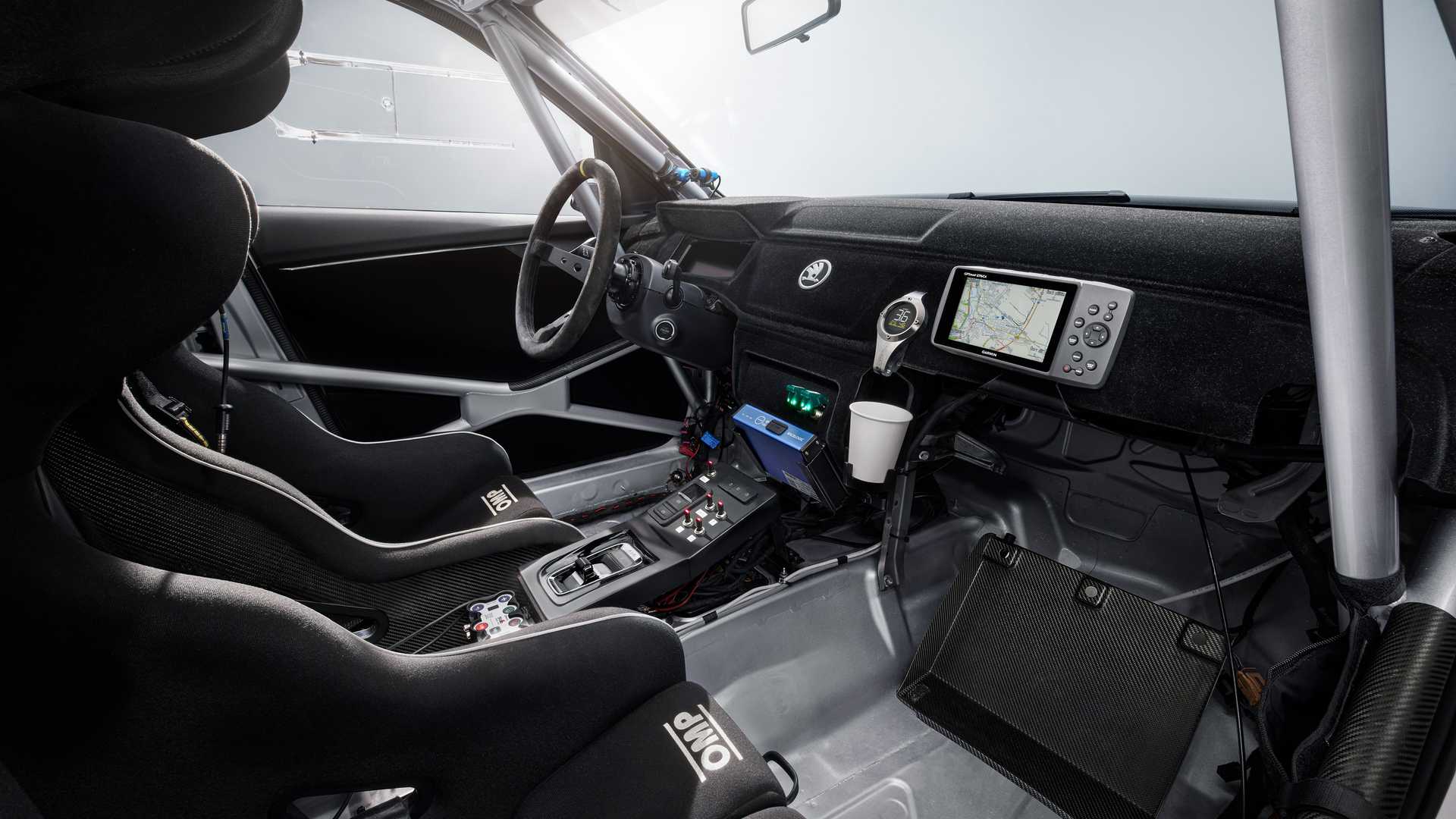 內部配置了賽車桶椅以及六點式安全帶,附有滅火器的配置防範可能發生的火災狀況,而在駕駛座前方還特別設計的一個攝影鏡頭,為的就是捕捉駕駛開車的英姿,此外副駕駛座前方安裝了螢幕系統可以方便副駕進行導航,而方向盤以及儀表台都源自於Fabia Rally2 evo這輛賽車,特別的是車輛後方安裝了Watergen的飲水機,透過直接從空氣汲取水分,然後經過過濾以及紫外線殺菌後得到可以飲用的水,最終這輛車控制在1,350kg,並配備上15吋的綠色OZ Racing輪圈,讓人看了就想要擁有。
