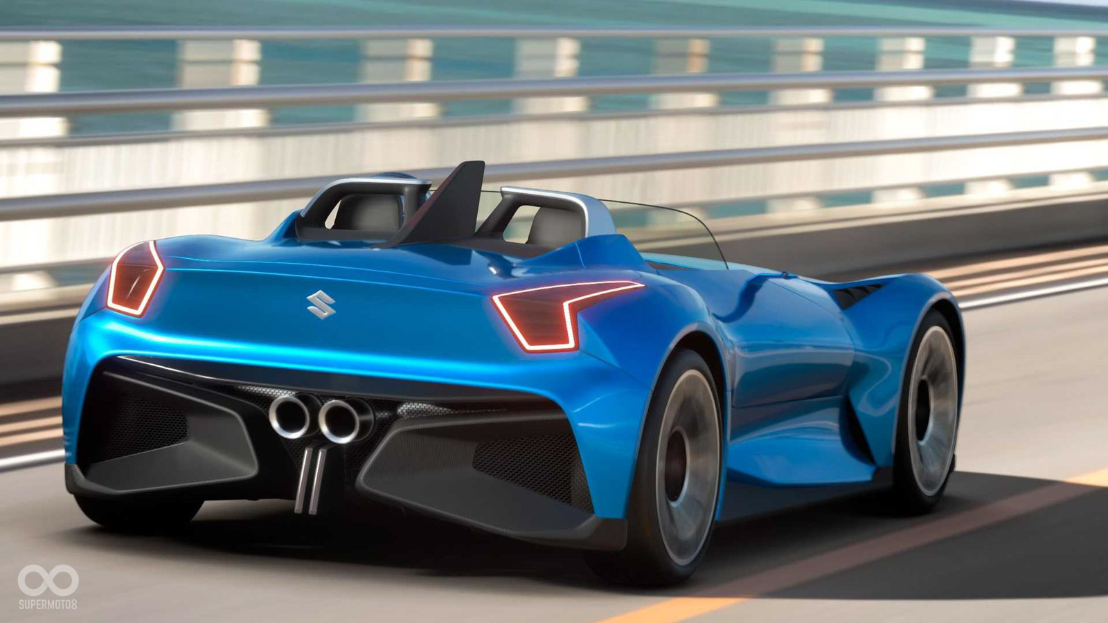外觀部分我想各位車迷應該都很熟悉,車頭明顯傳承自現行SWIFT SPORT的設計風格,特別是中央水箱護罩、保桿兩側進氣孔的造型實在相當類似SWIFT;車體選用雙座敞蓬設定,因為是概念車所以內裝充滿不切實際的科技感,車尾設計相當簡潔,地下可以看到誇張的空氣力學下導流,搭配斗大的雙出中置尾管提升戰鬥感。